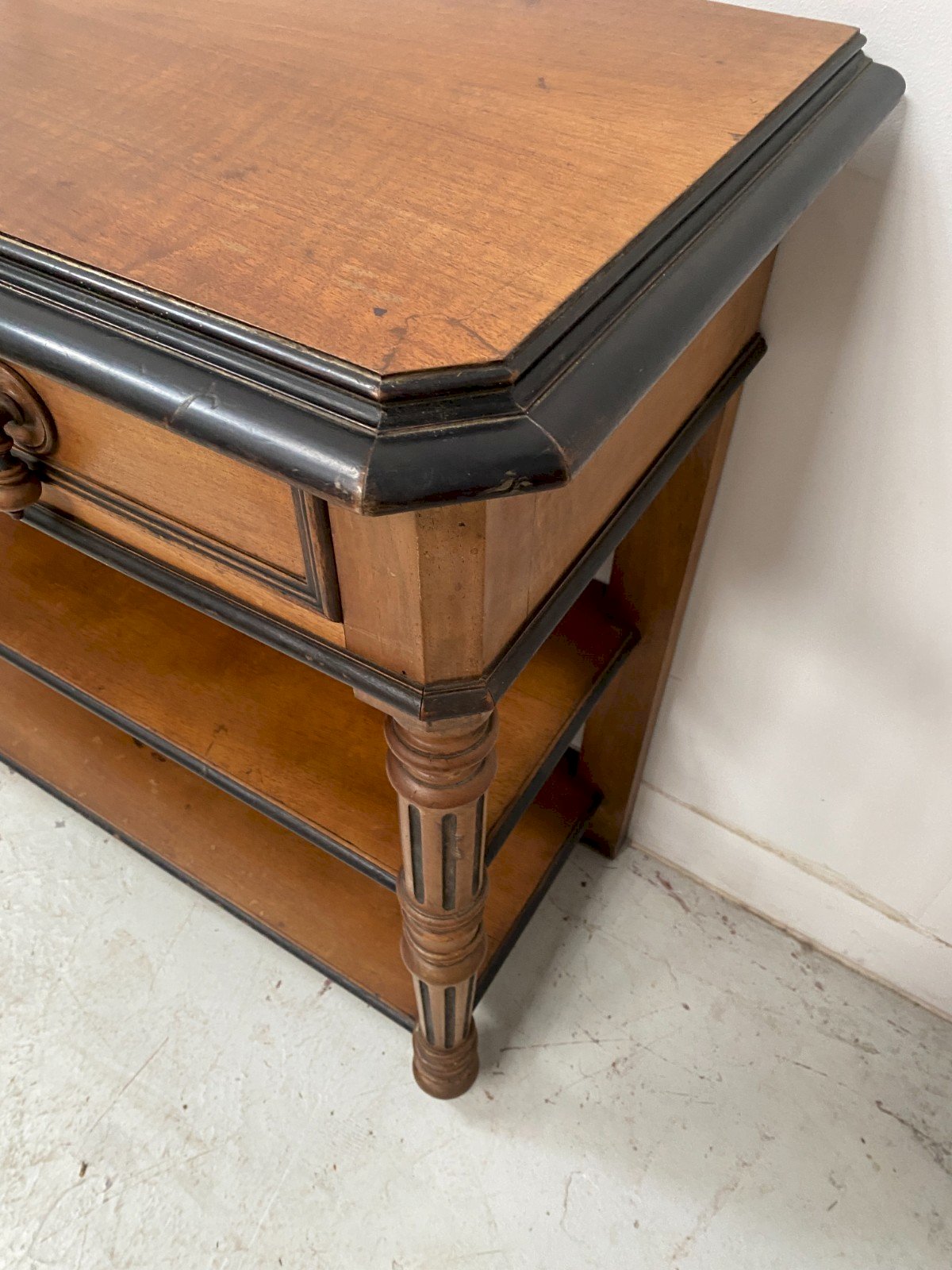 Console Napoléon III en noyer et placage de noyer Deux tiroirs en façade Piétement cannelé a deux plateaux en entre jambes Plateau ouvrant en forme d'étagère Bon état général Dimension  H 91 / 131 x L 110 x 45 cm  Epoque Napoléon III  XIX siècle  Type:Table Période:XIXème et avant Sous-type:Console Hauteur:91 Style:Napoléon III Matière:Noyer Longueur:110 Largeur:45 Forme:Rectangulaire