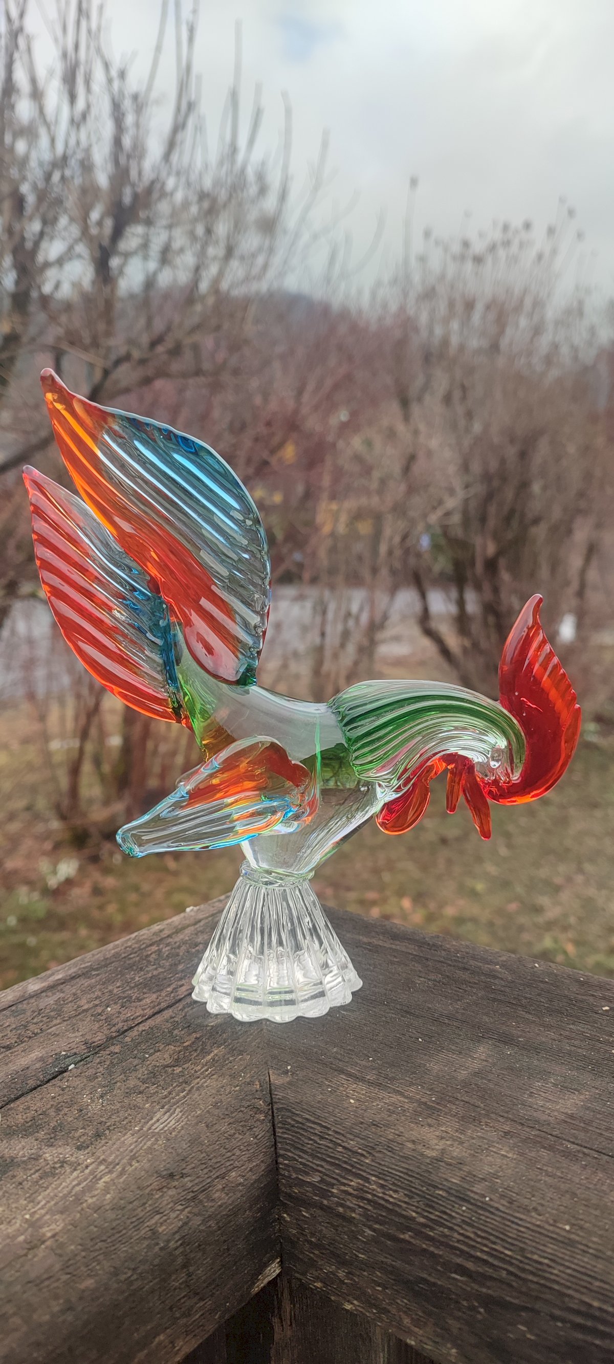 Coq décoratif en verre soufflé coloré – style Murano vintage