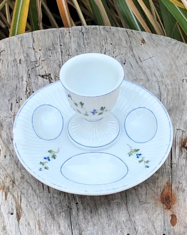 Coquetier ancien motifs Barbeaux en porcelaine de Mehun