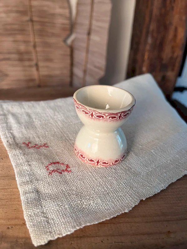 Coquetier diabolo en terre de fer fin XIXe début XXe.