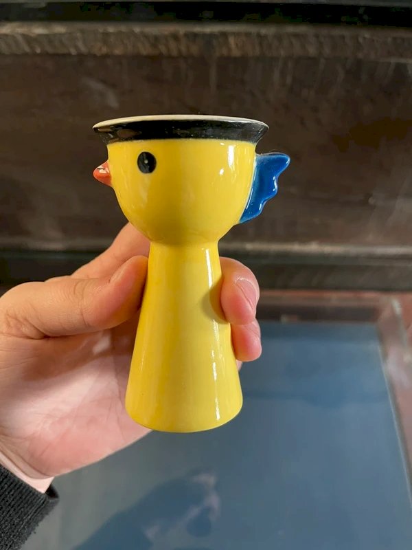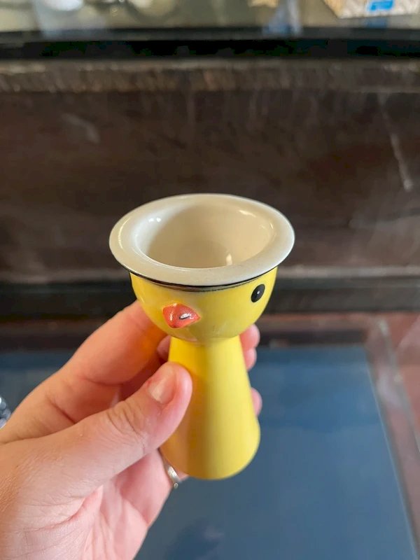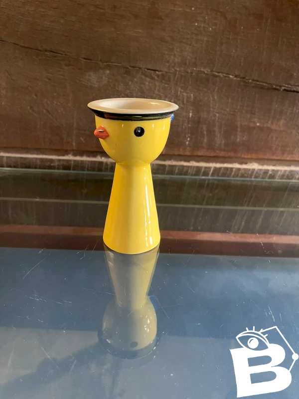 COQUETIER SUR DORMANT POUSSIN EN FAIENCE DE QUIMPER*
