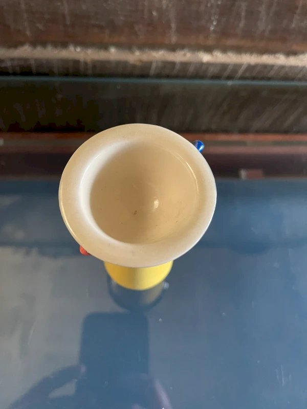 Coquetier diabolo terre cuite peinte rouge-orangé et Or, coupes et fruits
