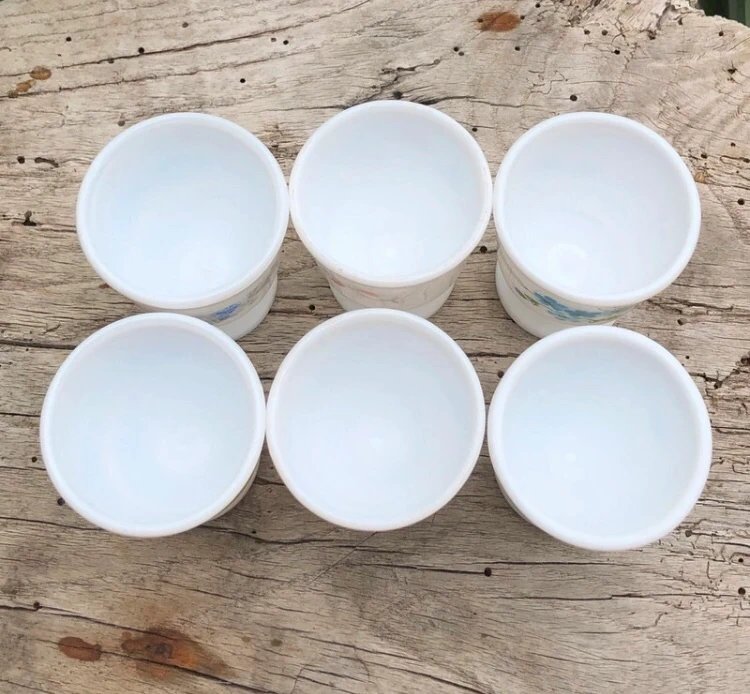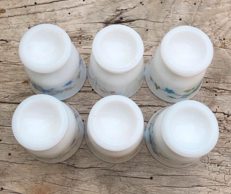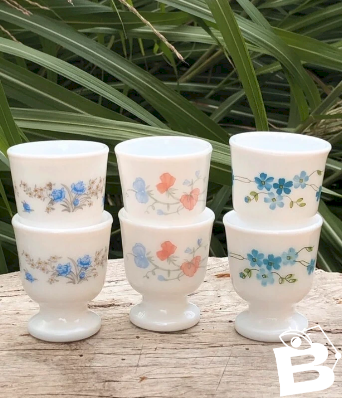 Coquetiers vintage Arcopal motifs fleurs rouges