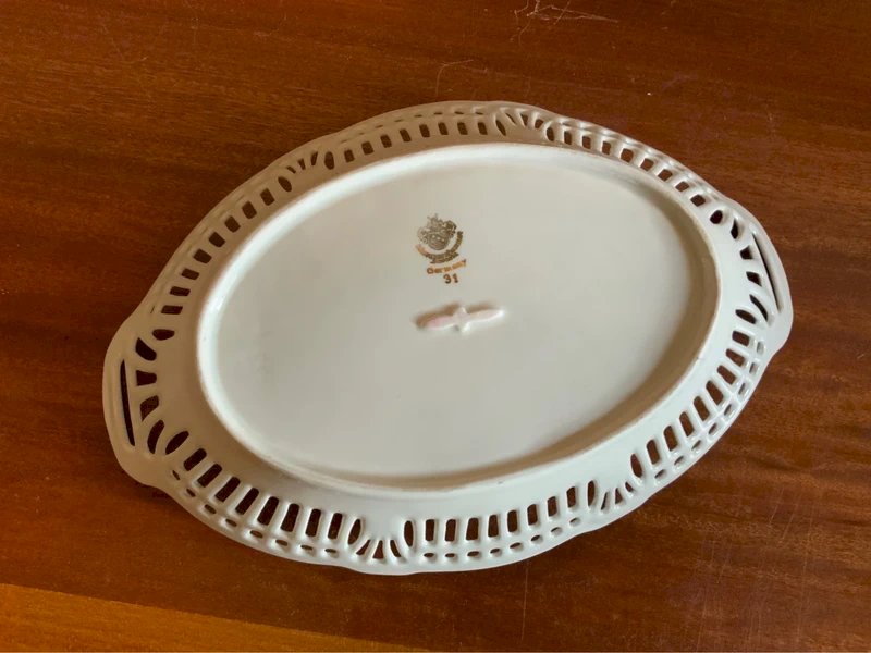 Corbeille à fruits en porcelaine dentelée ancienne Porcelaine Bavaria Allemande Très bon état Longueur 30cm, largeur 19,5cm, hauteur 6,5cm ? Me contacter pour baisser les frais d’envoi ?