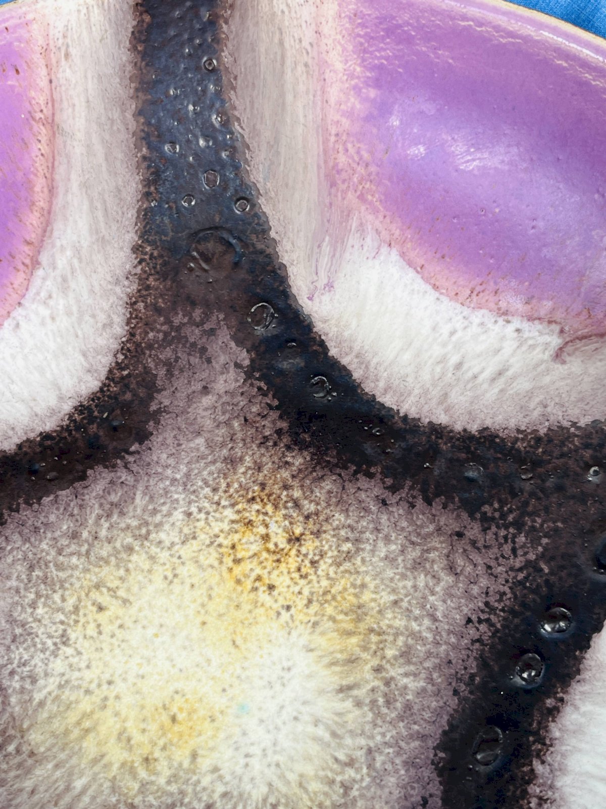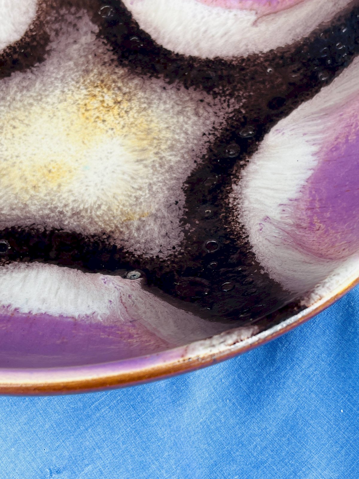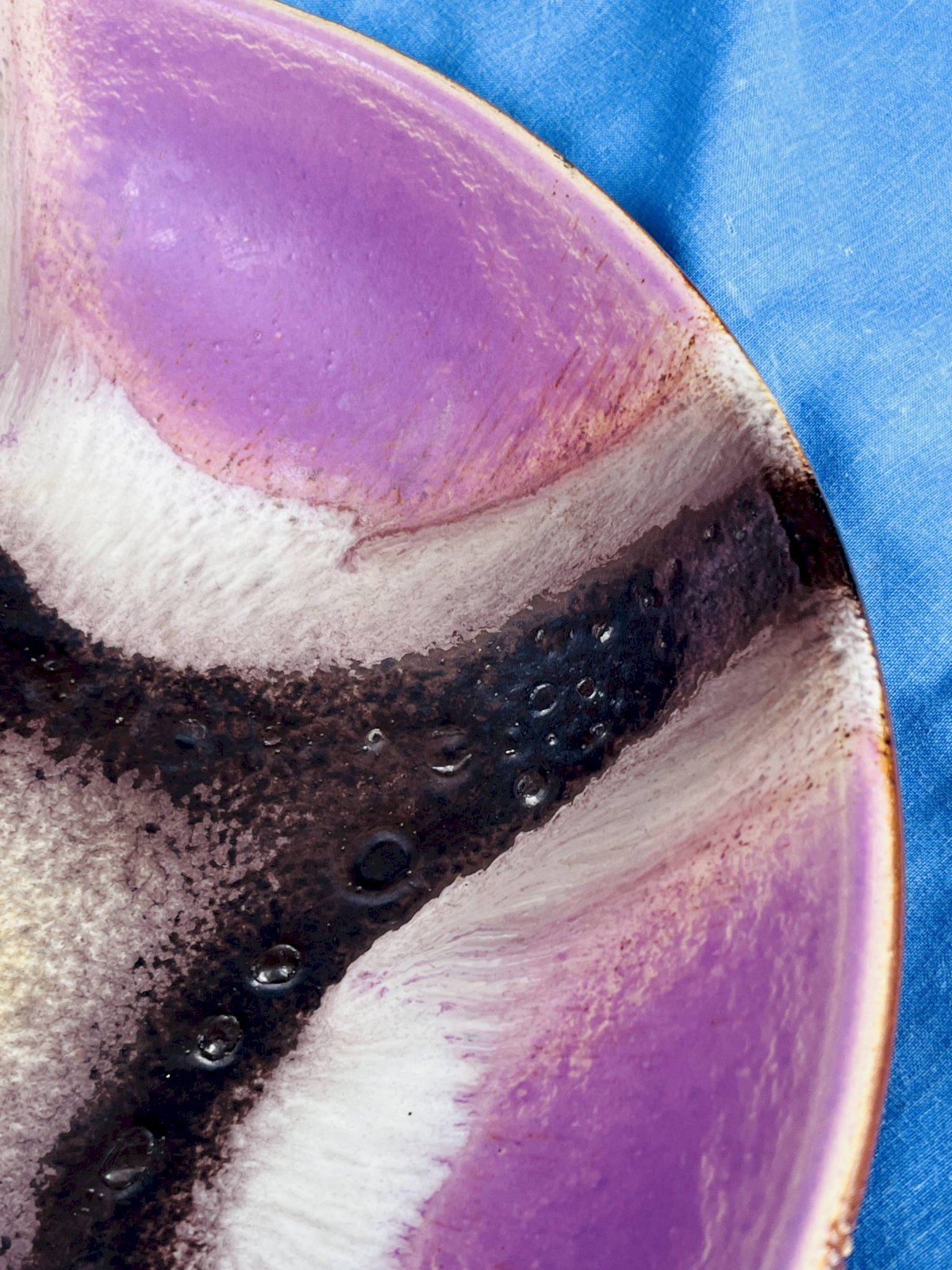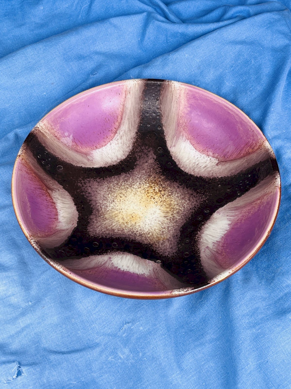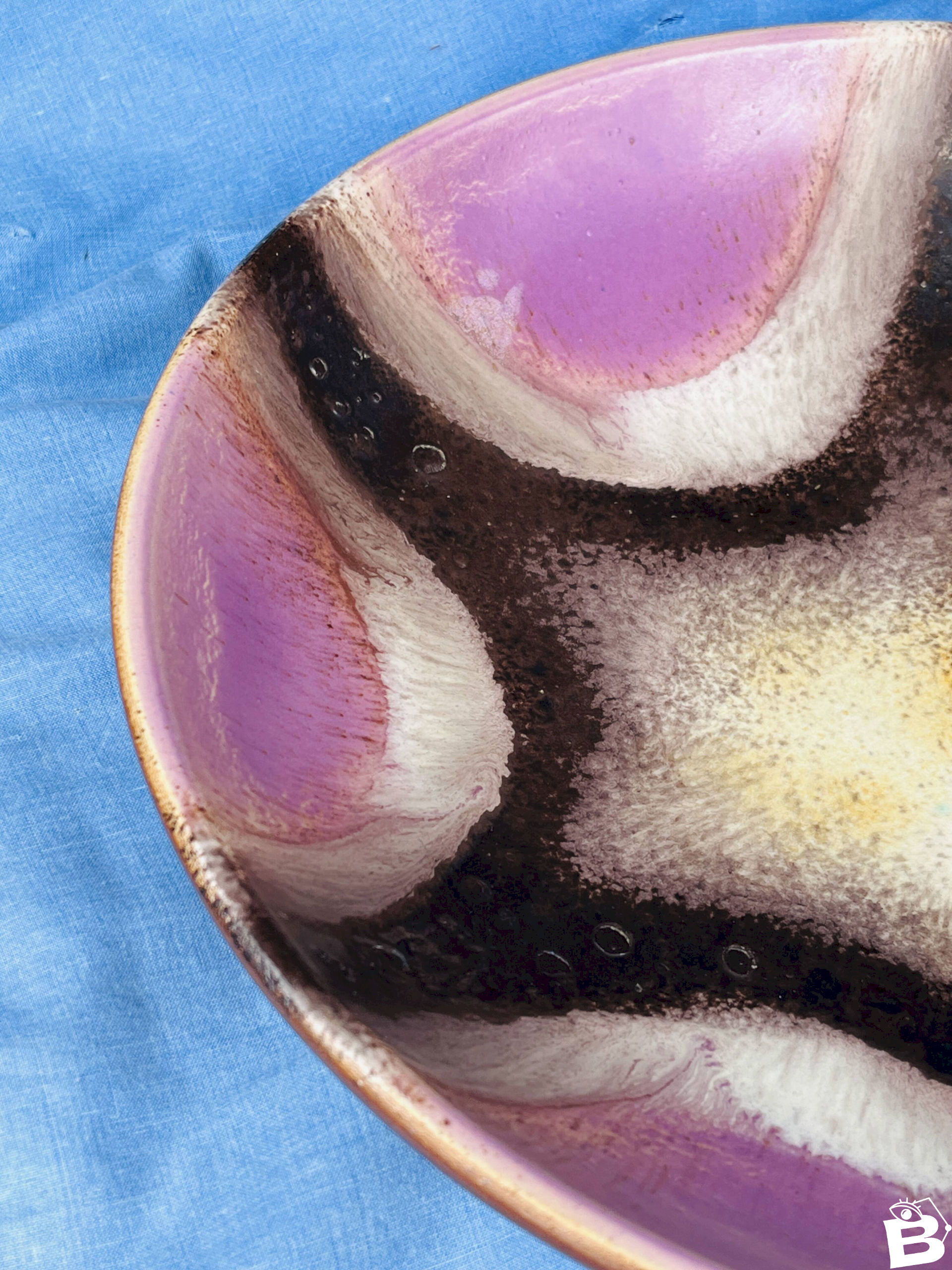 Ses teintes violettes et brunes vibrantes créent un motif captivant qui attire le regard, ce qui en fait une pièce maîtresse parfaite pour votre table à manger ou votre comptoir de cuisine.Fabriquée en céramique de haute qualité, cette coupe est aussi résistante qu'élégante.Son design unique témoigne du savoir-faire de la poterie ouest-allemande, réputée pour ses couleurs vives et ses motifs complexes.Idéale pour présenter des fruits, des objets décoratifs ou simplement comme œuvre d'art à part entière.Ne manquez pas l'occasion d'acquérir un morceau d'histoire alliant style et fonctionnalité.