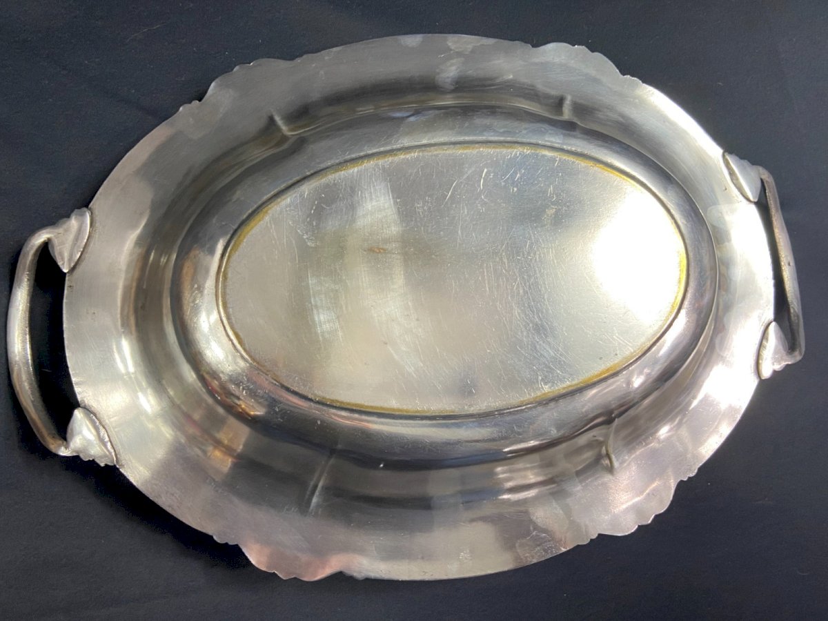Corbeille à pain, plat creux oblong à anses en métal argenté de style Louis XVI Epoque fin XIXe début XXe Dimensions max : Envergure avec anses 40,8 x envergure hors anses 34,8 x 26,5 x Hauteur 7,3 cm Poids : 757 grammes Je signale présence de fines rayures usuelles ainsi que de légères usures d'argenture Envoi ultra sécurisé à destination du monde entier - Retrait des commandes possible sur rendez-vous, 7 rue Notre-Dame 18000 Bourges. - Possibilité de groupage au sein d'un même colis : merci de bien vouloir me contacter préalablement afin que je puisse calculer vos frais de transport optimisés. Authenticité:Original Type:Art de la table, Cuisine Origine:France Sous-type:Plat Matière:Métal argenté Style:Louis XVI Pays d'origine:France métropolitaine