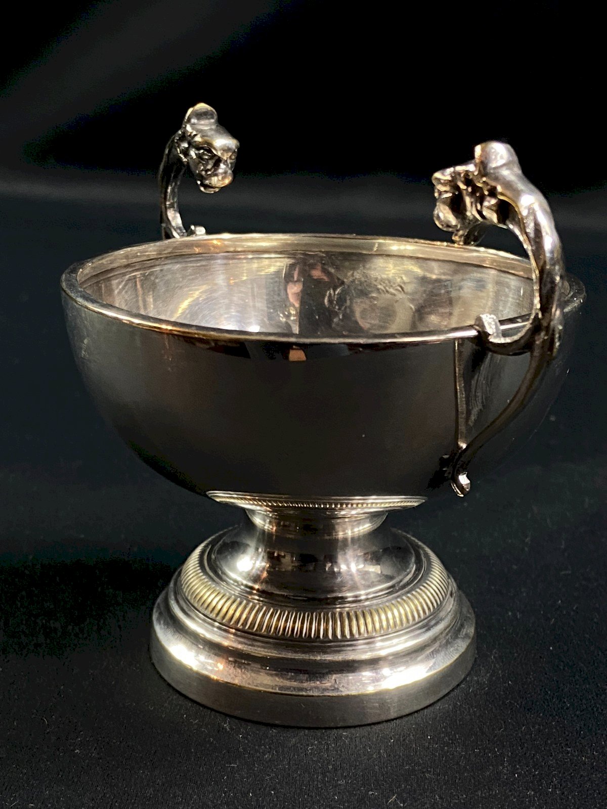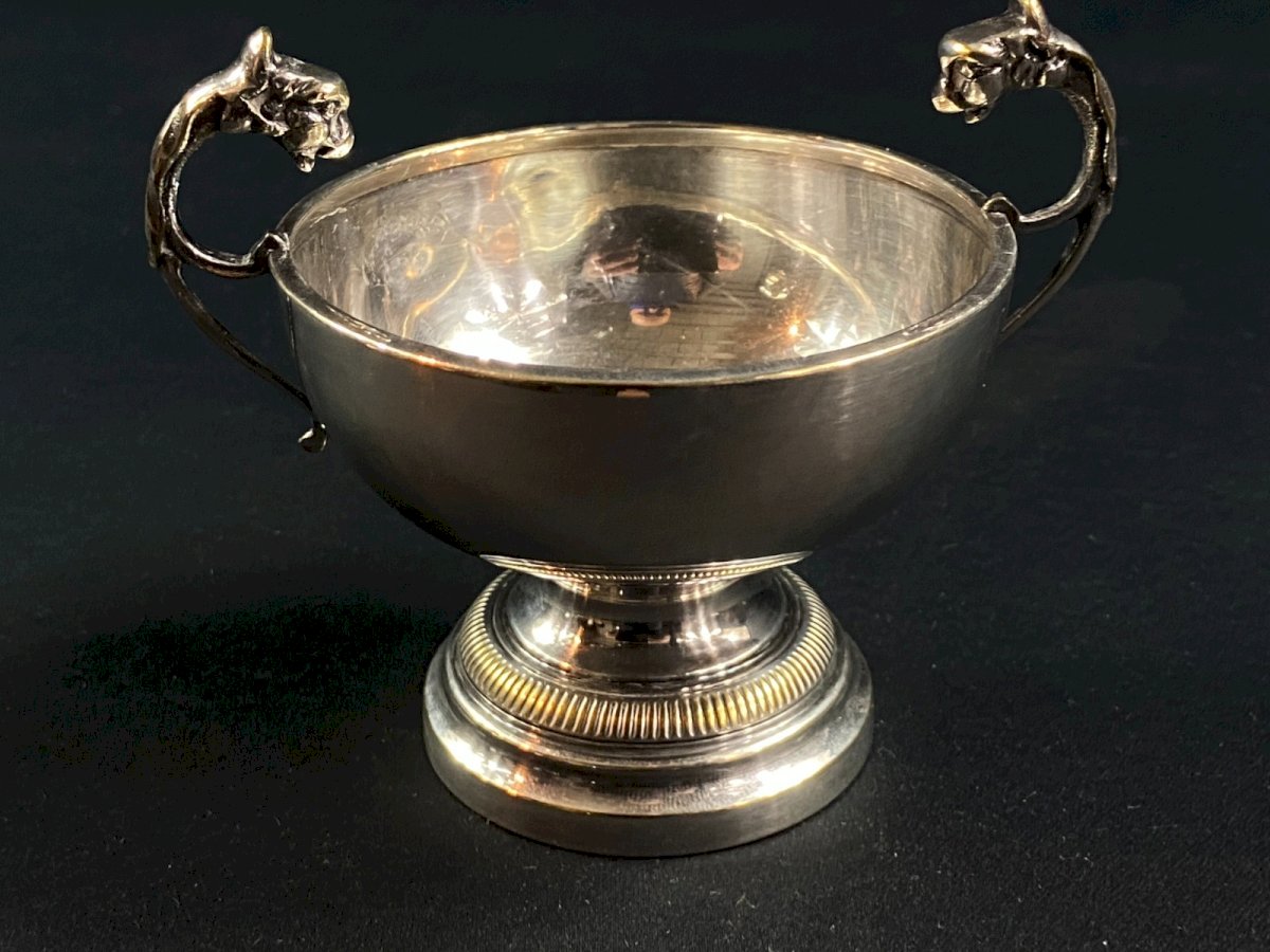 Coupe à anses sur piédouche en métal argenté de style Louis XVI