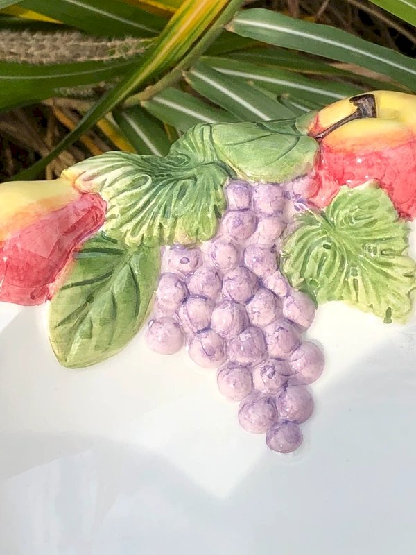 grande Coupe à Fruits Vintage Céramique Design 60 décor fougeres DLG Elchinger