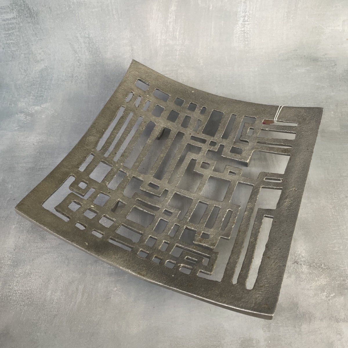 Coupe centre de table corbeille a fruit vide poche en aluminium décor ajouré Centerpiece Fruit basket Trinket dish Aluminum with openwork design Dimensions ~ 20.8 x 20.8 cm Poids ~ 0.4 kg Excellent état, RAS, voir photos. Pensez à grouper vos achats pour réduire les frais de port ! Sous-type:Coupe Matière:aluminium