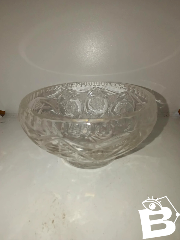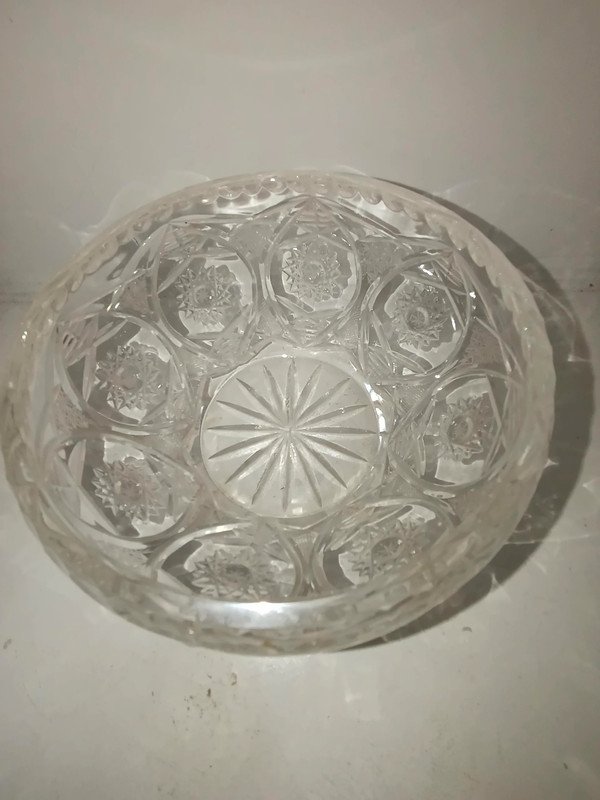 coupe en cristal taillé joliment travaillée en bon etat diametre 15cm hauteur 8cm juste une ou deux minis egrenures...
