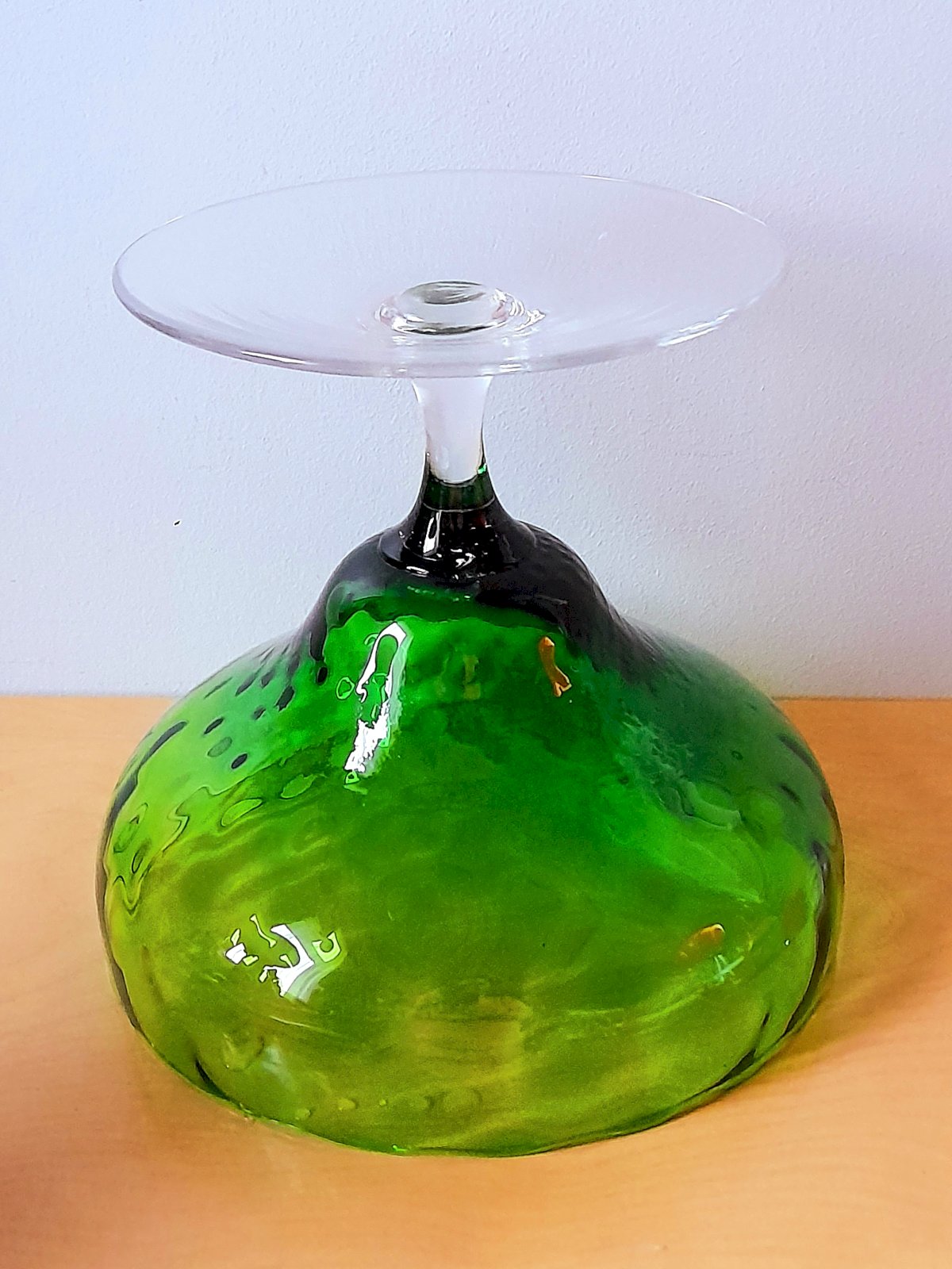*JOLIE COUPELLE VIDE POCHE VERRE Bullé incolore et PIED VERT signé