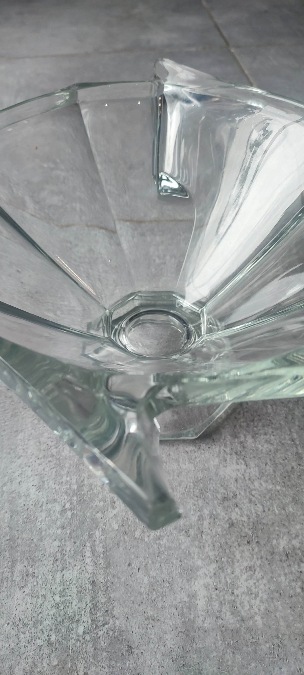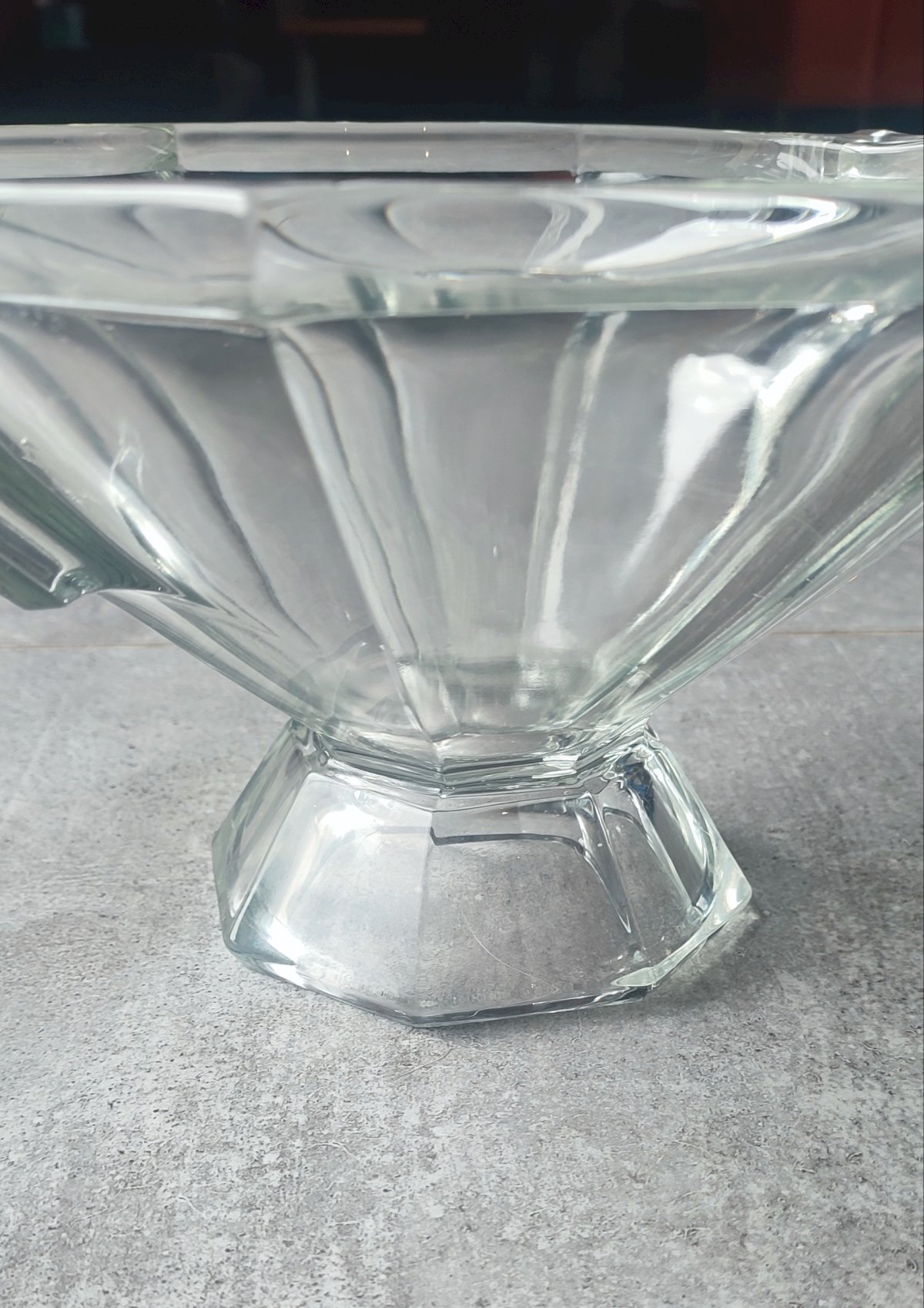 Coupe en verre épais gravée Slovakia Style Art Déco Transparent Géométrique Verrerie