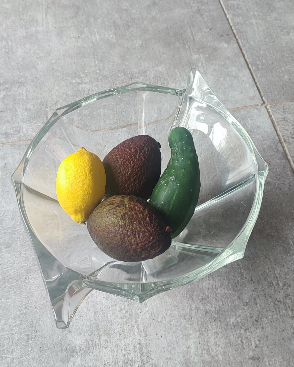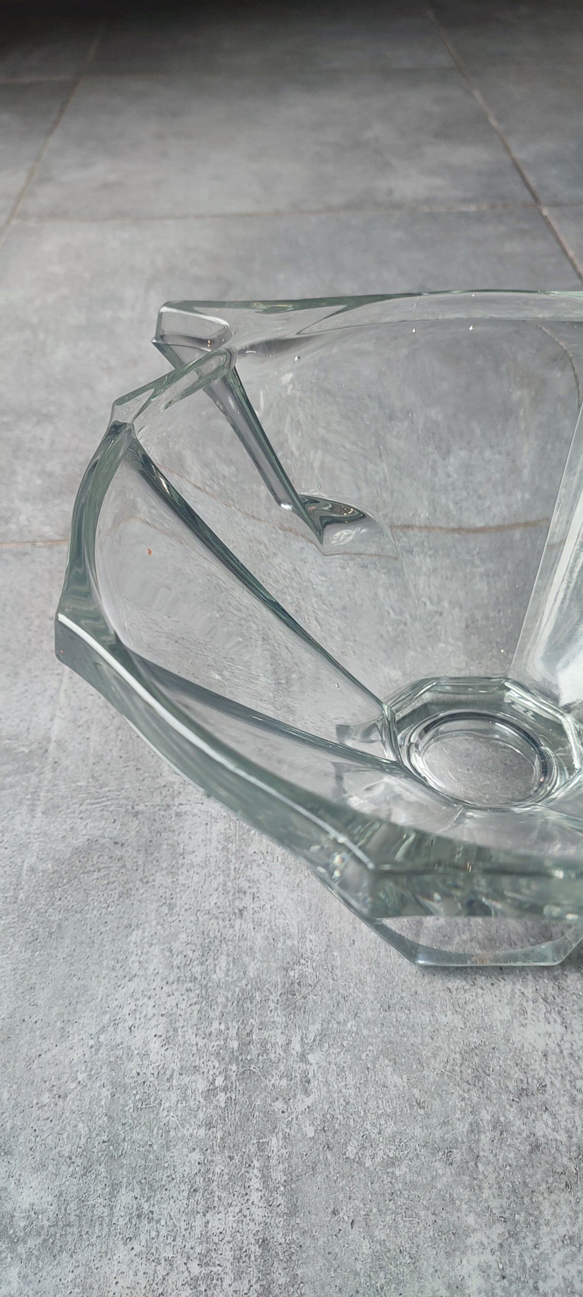 Grande coupe en verre lourd et épais, gravée Slovakia sous la base.