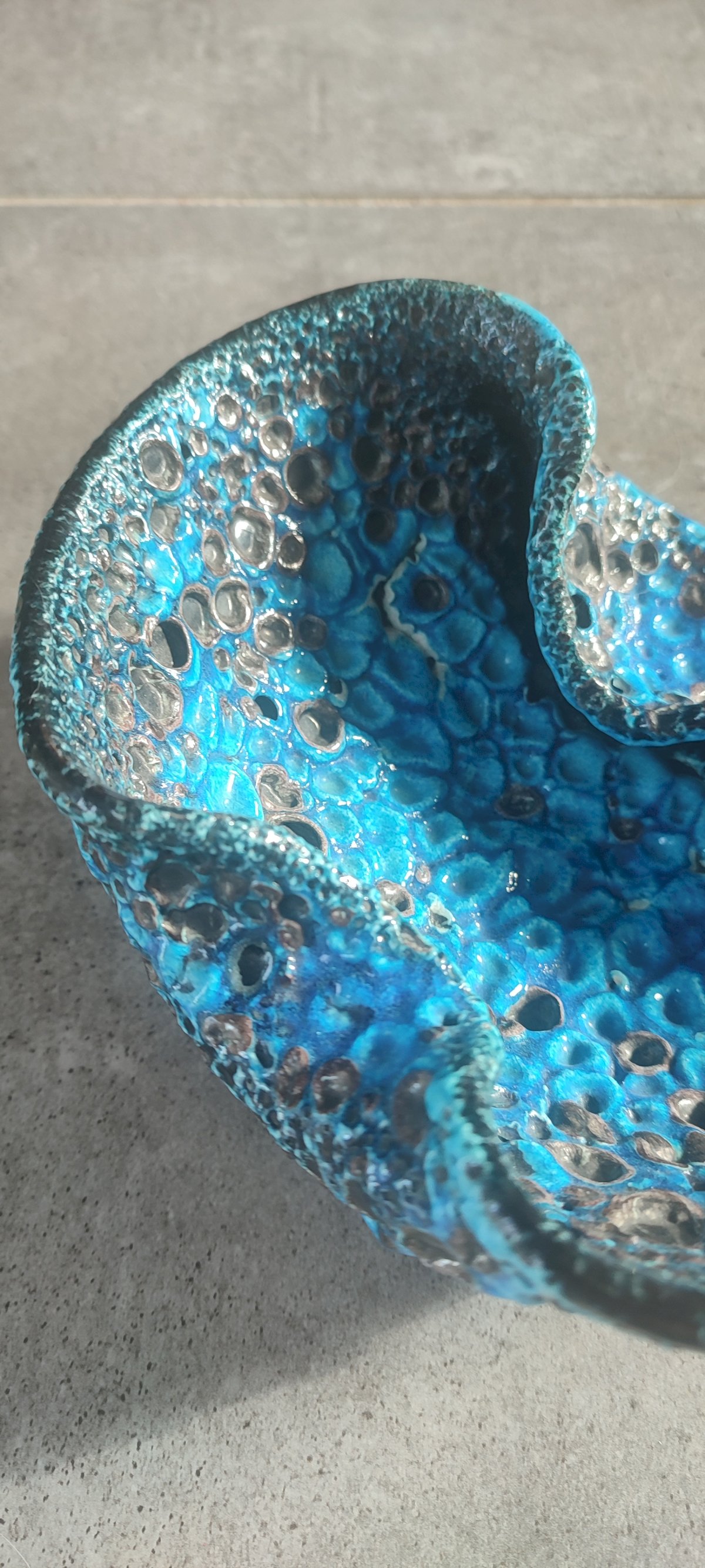 Coupe Fat Lava en céramique Le Cyclope, Émaux des Glaciers Années 1960 Bleu/Noir Abstrait