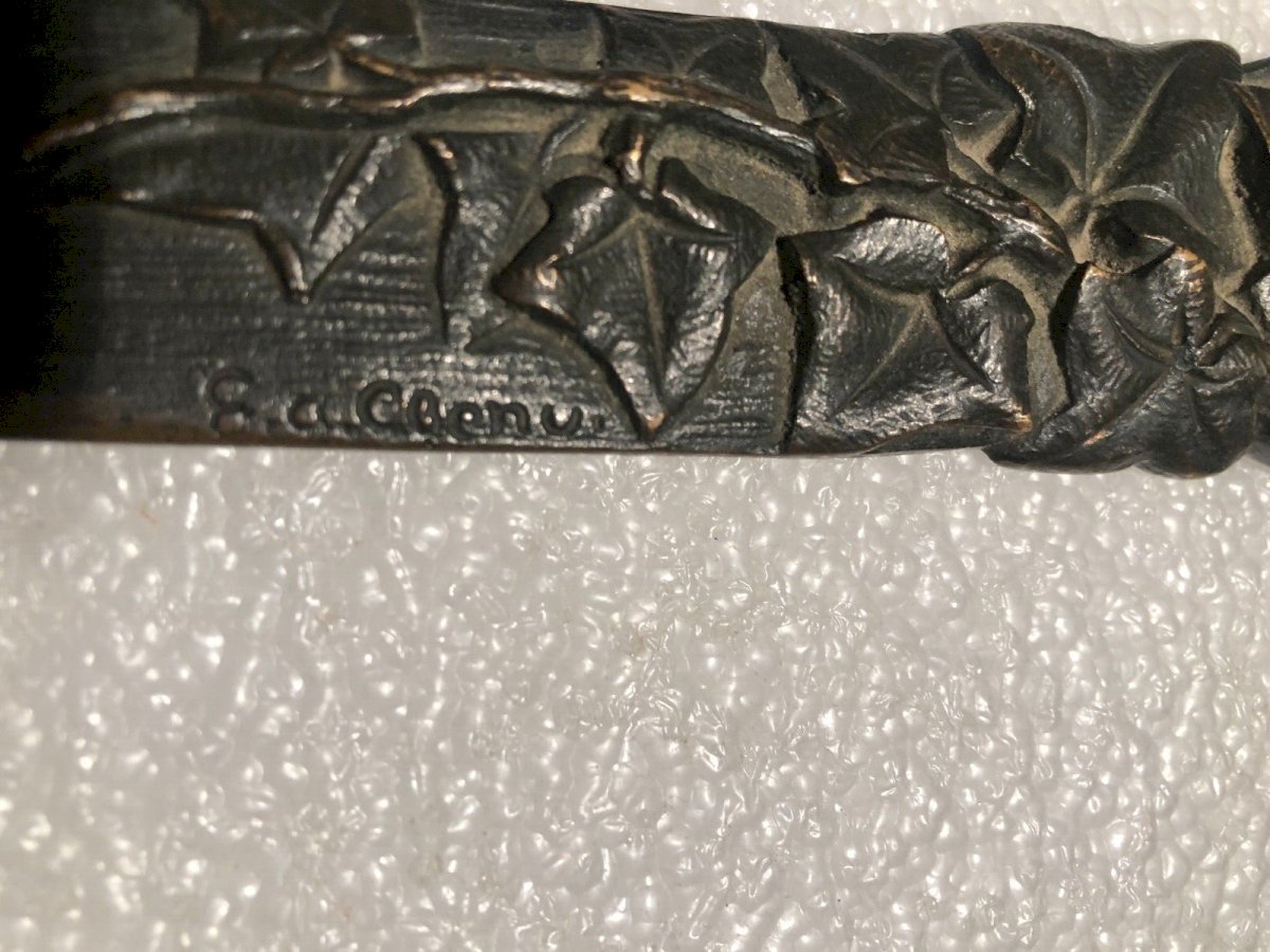 ancien coupe papier en bronze de style art deco signé A G Chenus   à signaler que le bout de la lame est tordu à son extrémité ( visible sur derniere photo )  Vendue dans son jus long 30.50 cm larg 4.50 cm poids 280 gr  Regardez les photos ci-dessus qui auront également valeur de descriptif. Emballage soigné et sécurisé par mondial relay ou avec la poste à choisir lors de votre achat. merci à tous et bonne chine dans ma boutique. renvoi accepté  dans 1 délai de 14 jours à partir de la réception, retour dans son emballage d'origine, dans son état initial,pas de remboursement pour les objets retournés cassés ou perdus par le transporteur,retour à la charge de l'acheteur . N'hesitez pas à mettre ma boutique dans vos favoris Authenticité:Original Marque:Période Art déco Type:Ouvre lettre Coupe Papier Poids:280 gr Origine:France Période:Art Déco Sous-type:Coupe Matière:Bronze Longueur:30.50 Largeur:4,5 cm