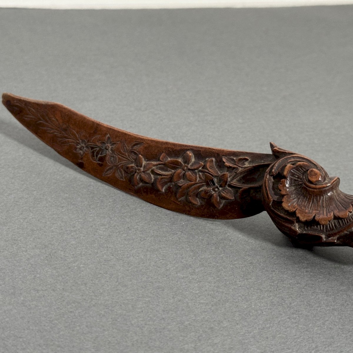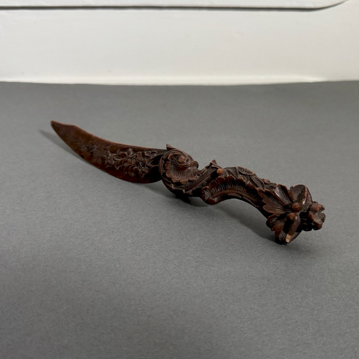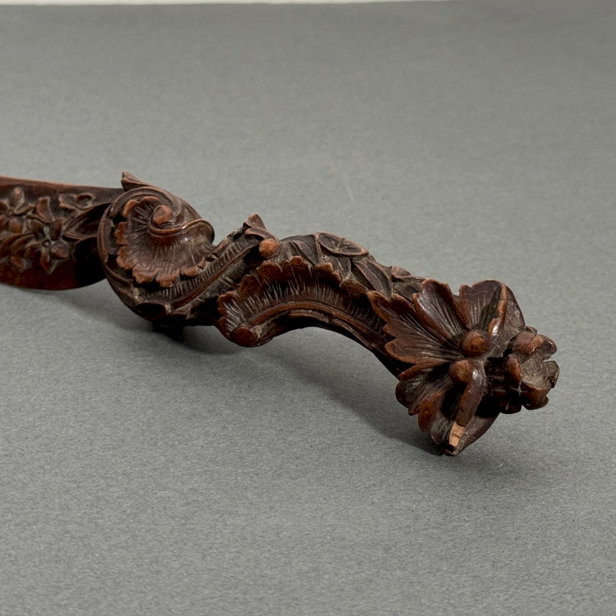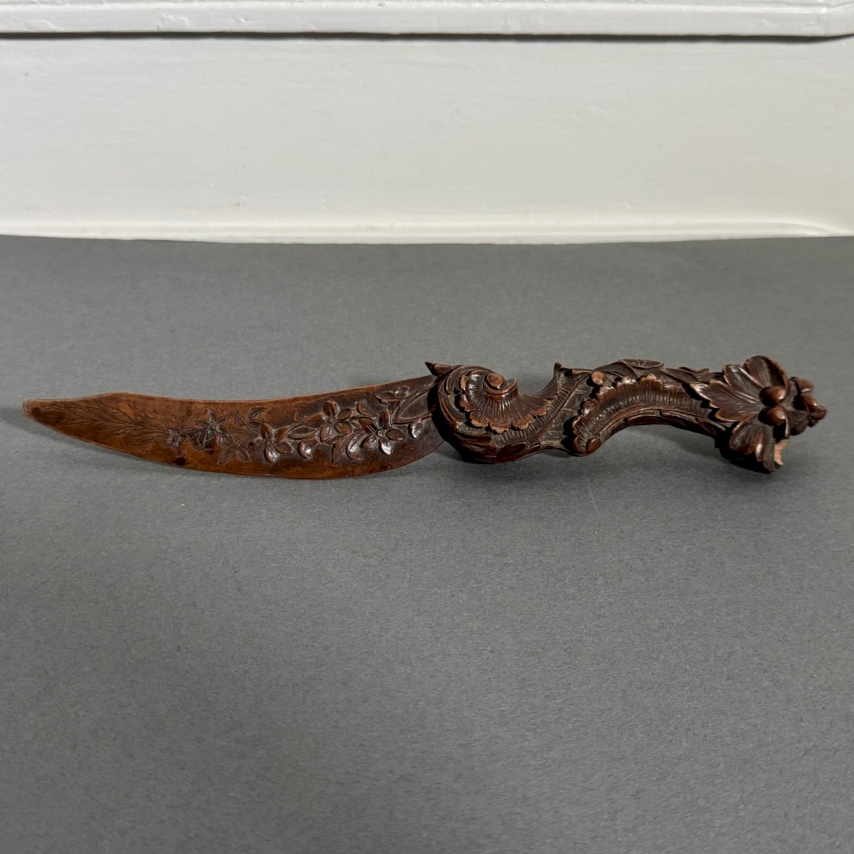 Coupe-papier travail la Forêt Noire Black Forest début XXe richement sculpté M3937 Ce coupe-papier est un travail de la Forêt Noire du début du XXe, il est joliment ouvragé. Pour l'état, notons des traces d'usure dues à l'usage, des petits manques sur le bois et une pointe émoussée. Nos photos vous permettent d'apprécier la qualité de l'objet. Pour l'état, merci de bien détailler les photos. N'hésitez pas à zoomer . Les photos font partie intégrante de la description. Dimensions : Hauteur : 23,5 cm Largeur : 4 cm Profondeur : 2 cm A : O41L3YL4J1 P : 1684981 Je reste à votre disposition pour toute question. Type:Objet de vitrine, Décoratif Sous-type:Coupe-papier Hauteur:23,5 cm Longueur:cm Largeur:4 cm Pays d'origine:France métropolitaine