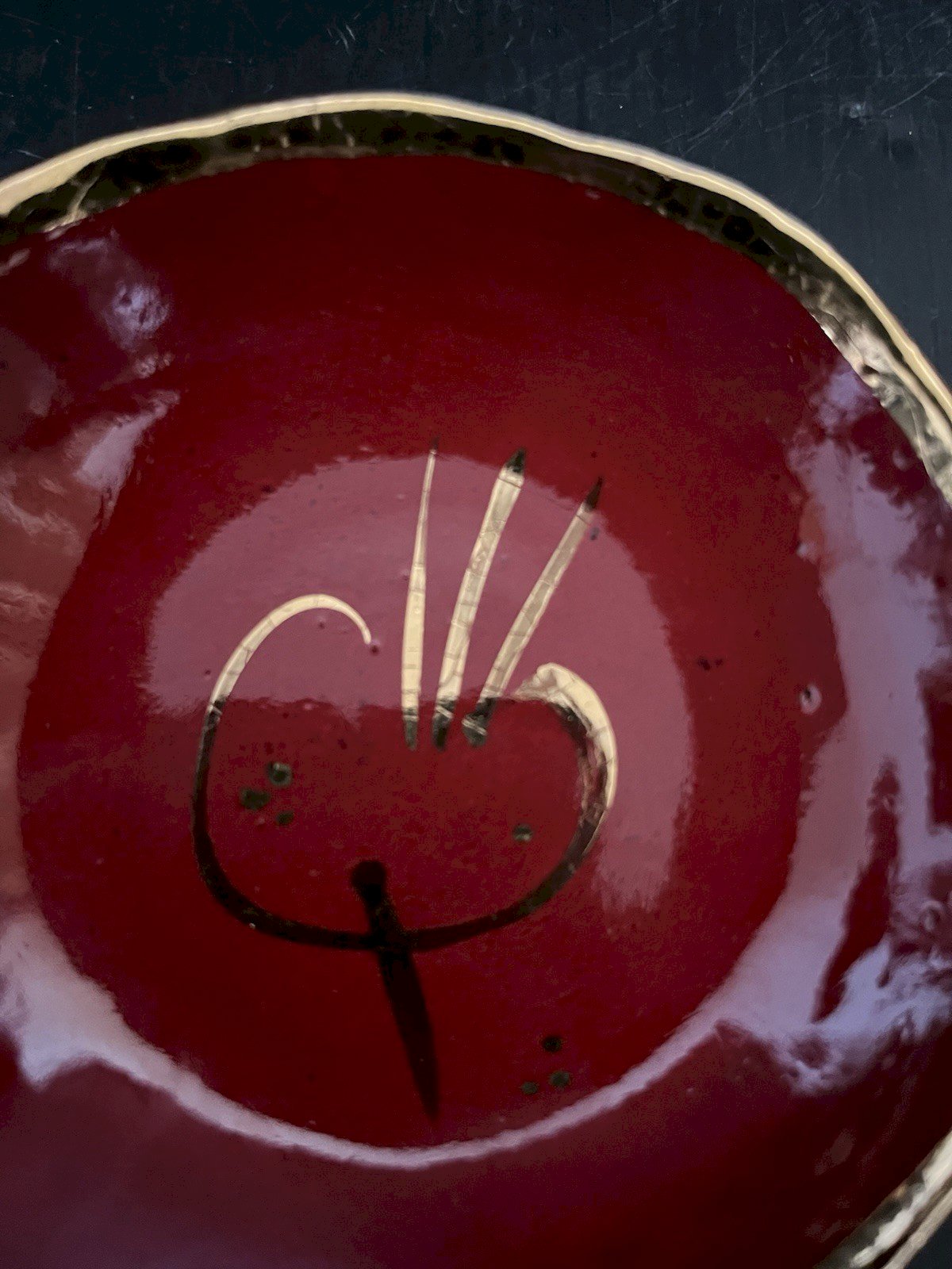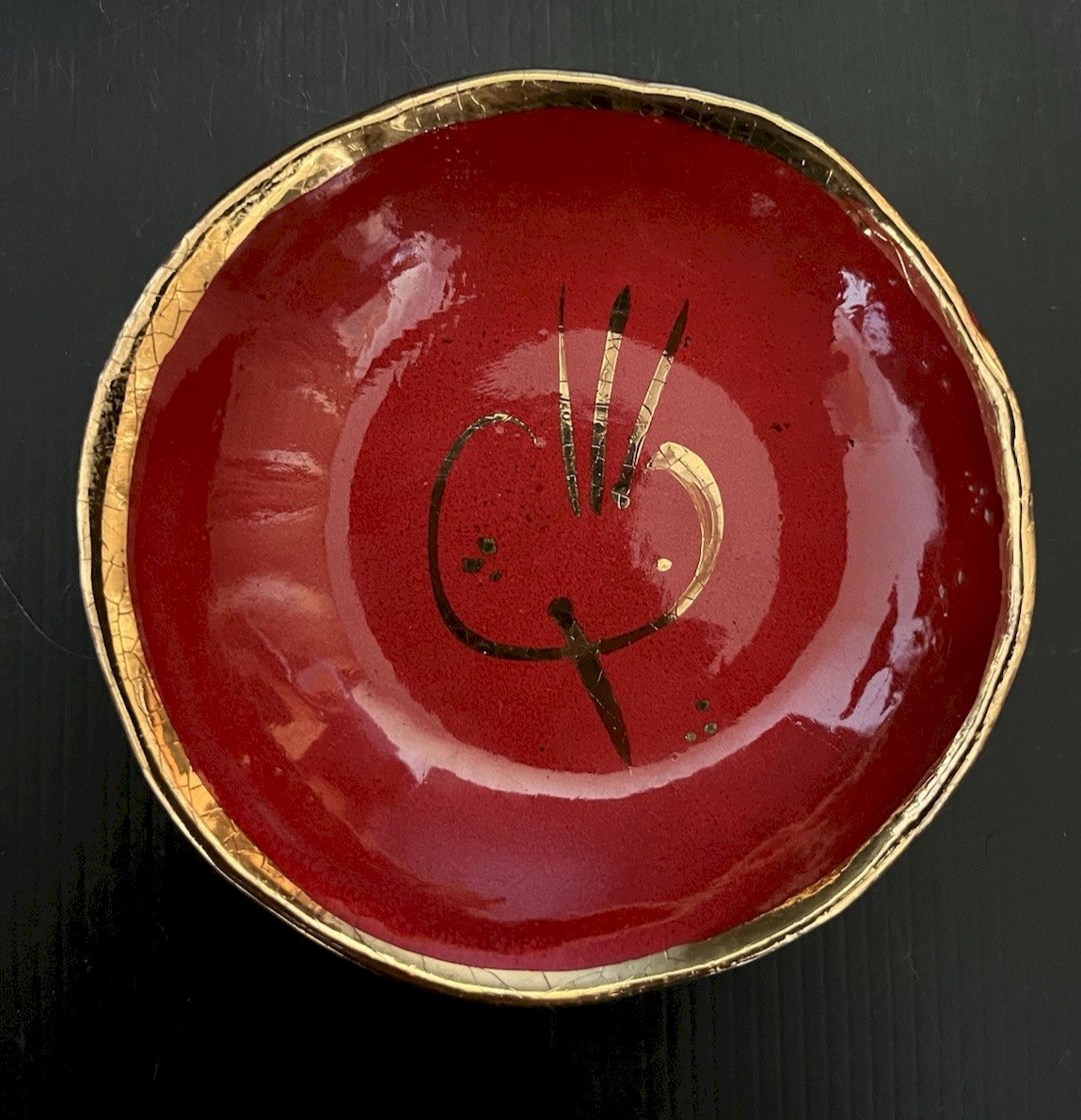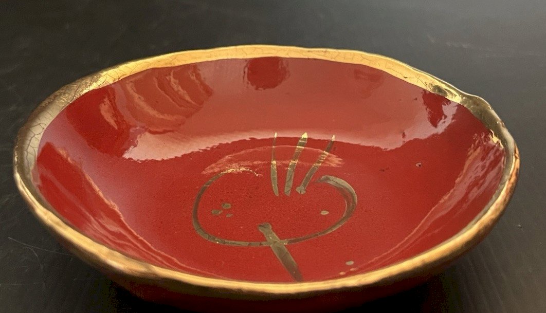 coupelle vide poche ceramique orange dorure Agnes Raffier Marseille artisanat