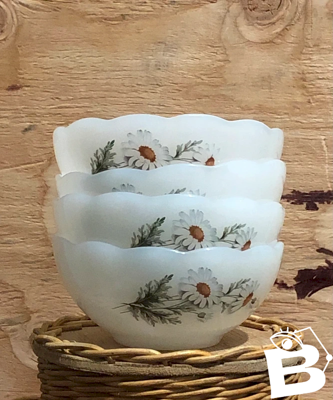 Coupelles Arcopal rétro vintage motifs marguerites Blanc
