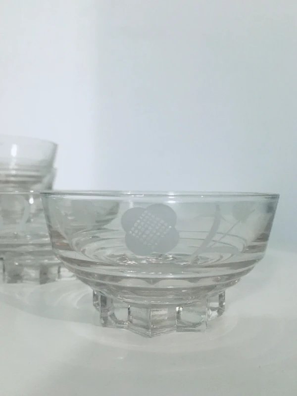 5 coupes à champagne vintage Luminarc Pied étoile et décor fleurs blanches style Art Déco Diamètre 8,5 cm Hauteur 4,5 cm Très bon état Pour deux articles achetés dans mon dressing, le troisième est offert ☺️( le moins cher des trois …) Me contacter pour l’achat d’un lot Réduction de frais de port possible pour les vases,les assiettes, les bols#retro#vintage#vaissellevintage#vaisselleancienne#vaisselleanglaise#artdeco#annees70#boheme