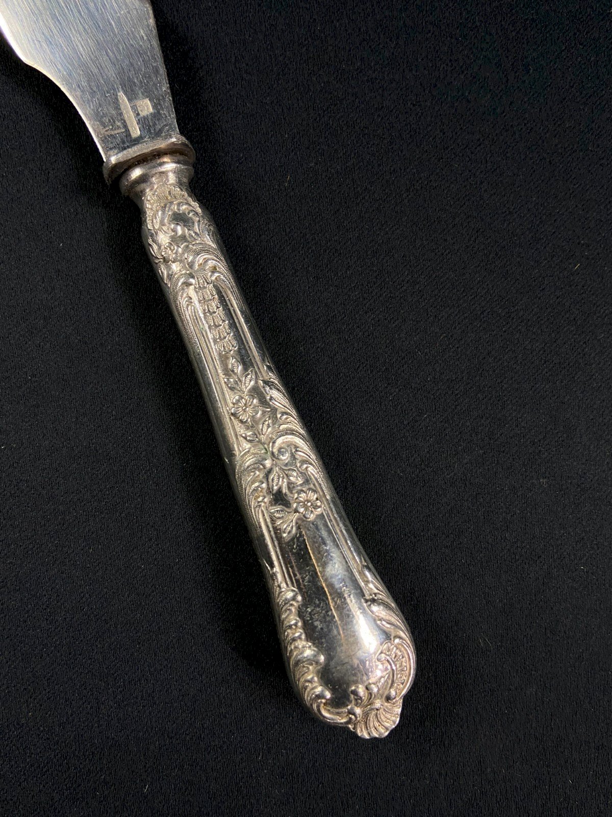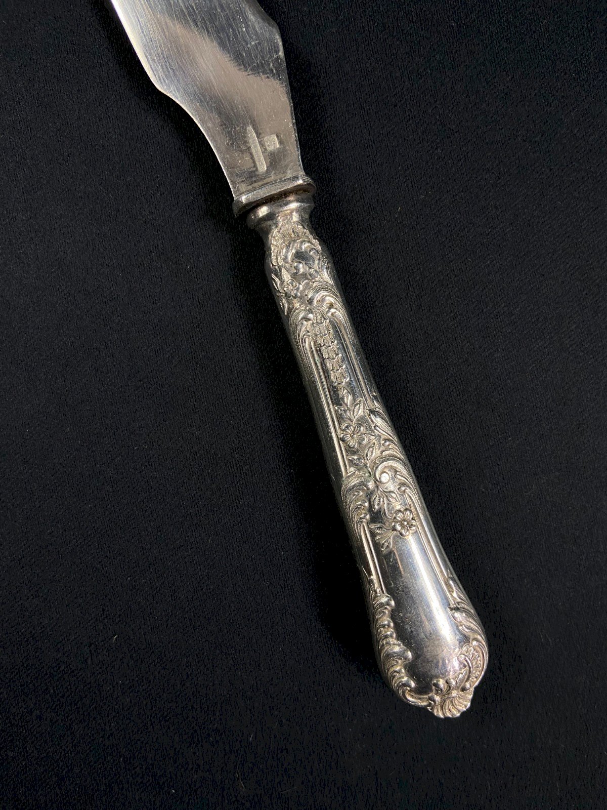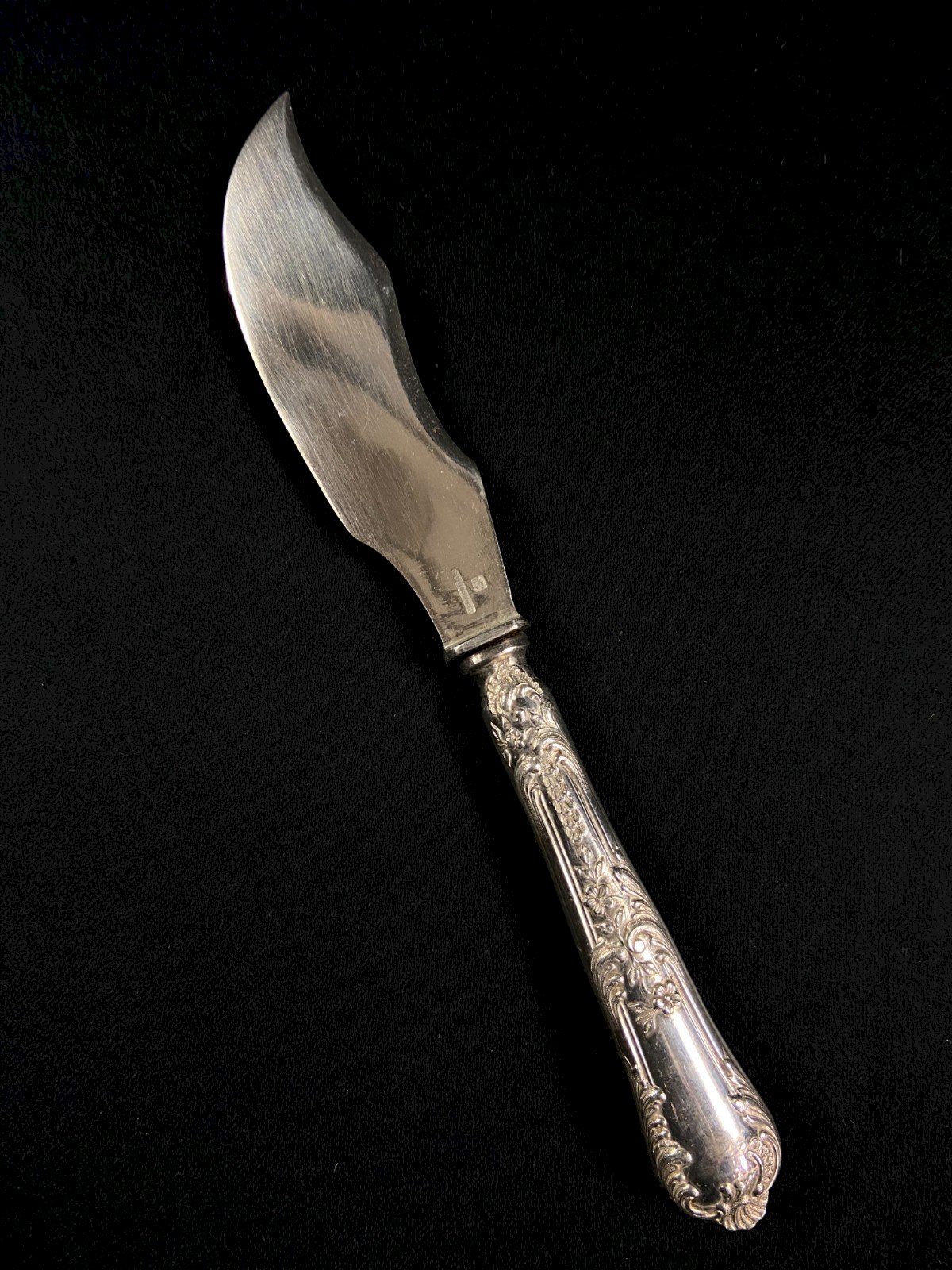 Couteau à tartiner de style Louis XV en métal argenté signé Boulenger