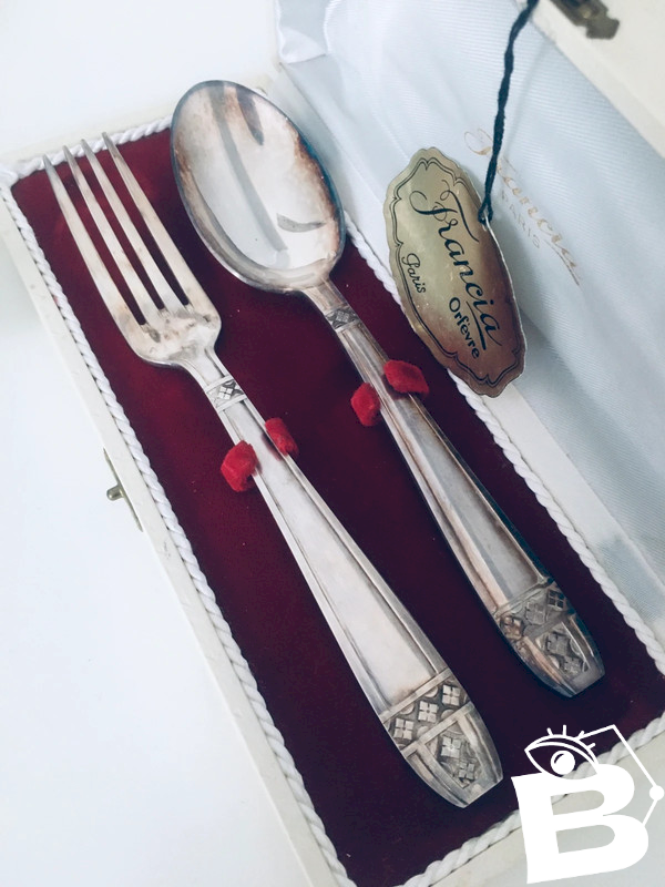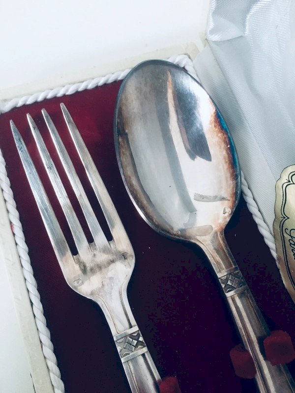 Couverts anciens en métal argenté 60G Une cuillère et une fourchette Prévoir un nettoyage avec produit adapté Longueur 18 cm Pour deux articles achetés dans mon dressing, le troisième est offert ☺️( le moins cher des trois …) Me contacter pour l’achat d’un lot Réduction de frais de port possible pour les vases,les assiettes, les bols #retro #vintage #vaissellevintage #vaisselleancienne #vaisselleanglaise #artdeco #annees70 #boheme...
