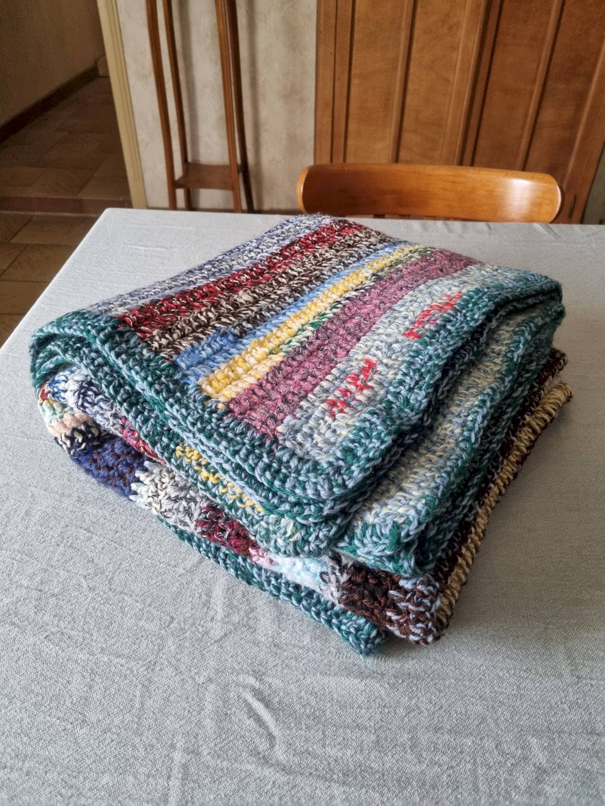 Couverture en laine 150 X 140 cm.Faite main, au crochet.Dimensions: 150 X 140 cm.Poids: 1.550 kg.