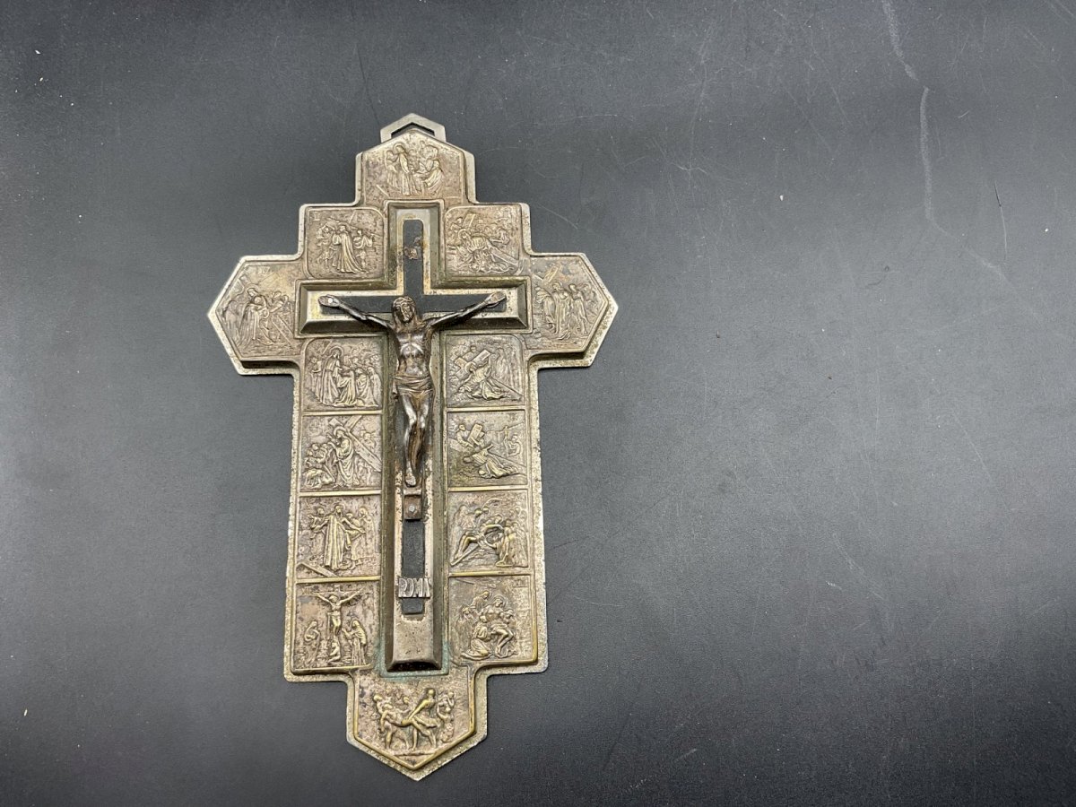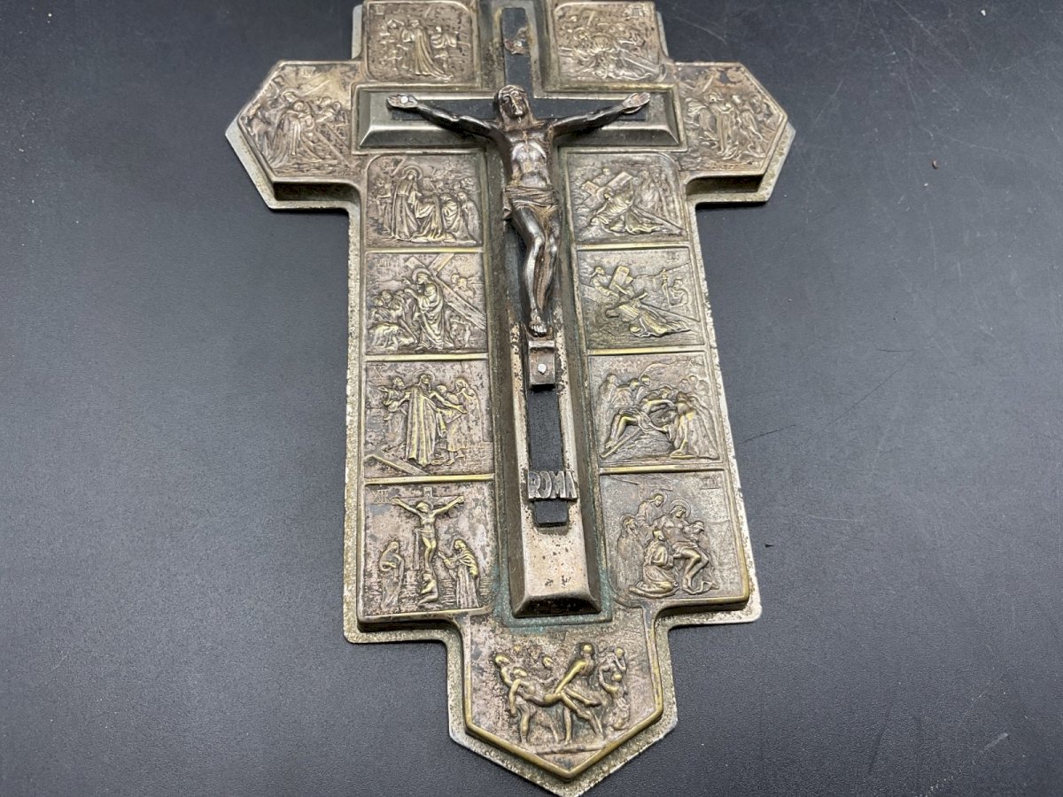 CROIX ,CRUCIFIX mural croix Rome. Dimension : 18 x 11,5 cm Authenticité:Original Type:Objet de vitrine, Décoratif Origine:France Sous-type:Figurine, Statue Style:Antiquité Matière:Bronze