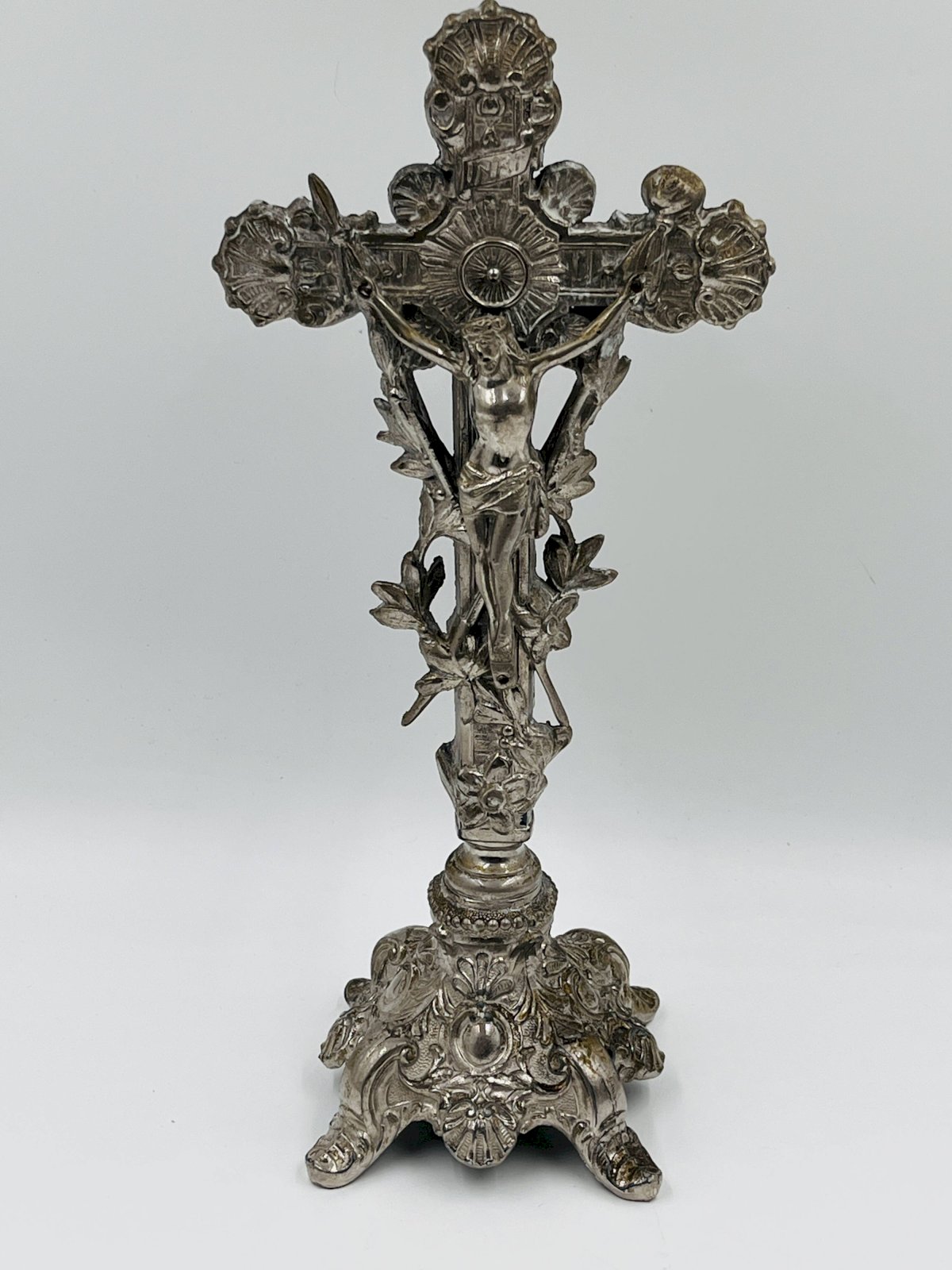 Superbe crucifix d'autel de fabrication Françaises des années 50.Très bon état.Dimensions: 17 X 13 X H 38 cm.