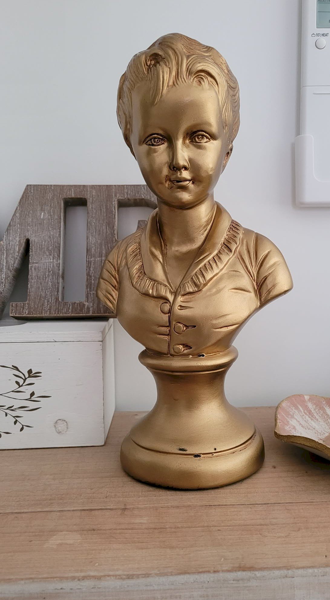 Ancienne Statue Buste Sculpture Plâtre peinte Jeune Fille Rêveuse