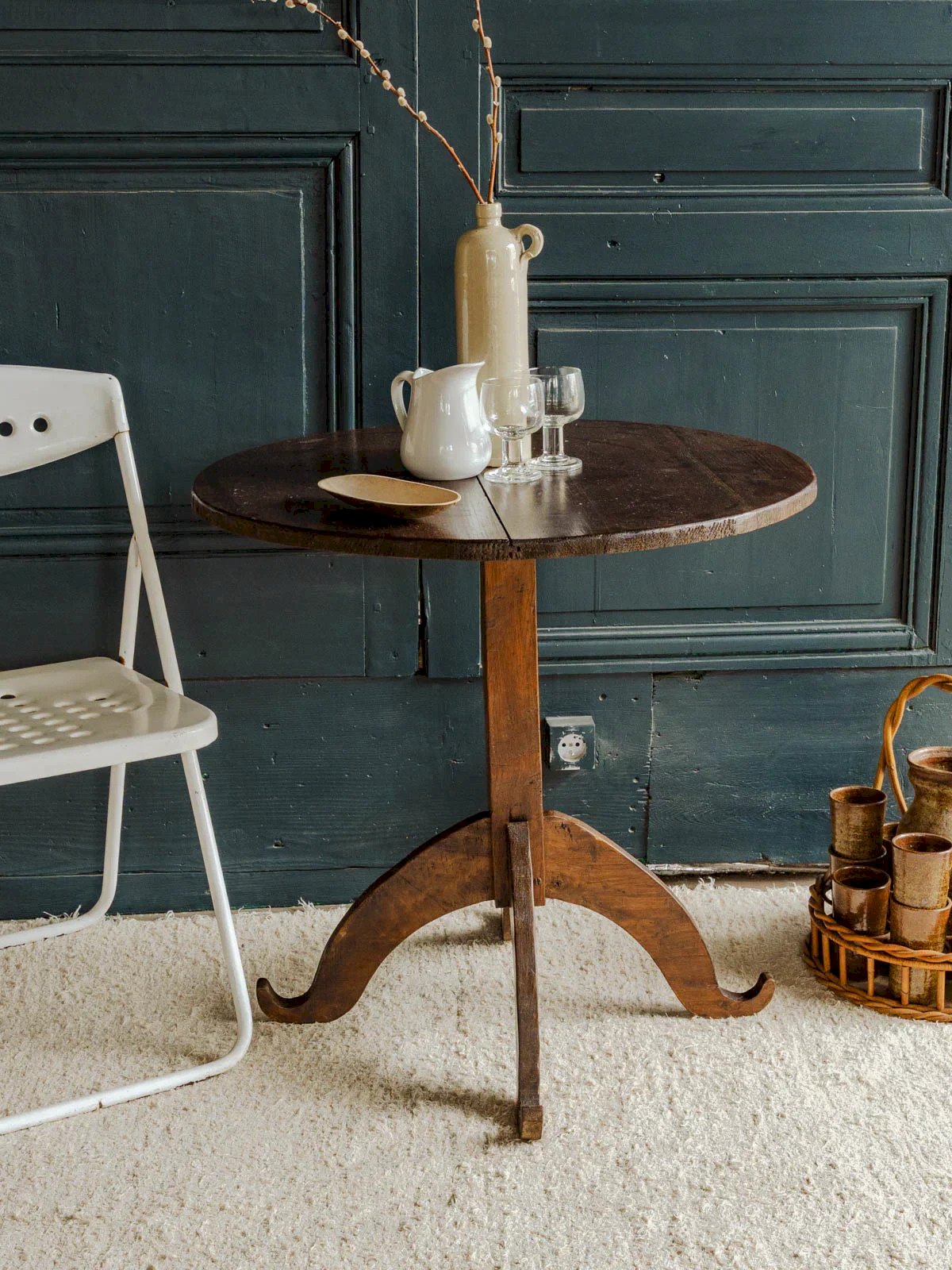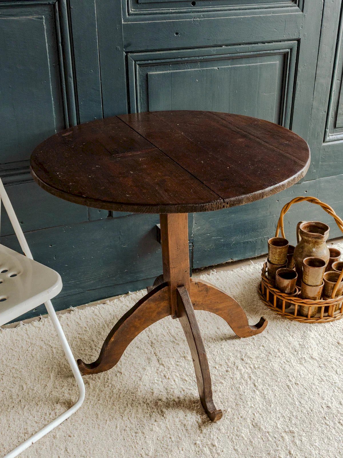 Invitez l'esprit bistrot à votre intérieur avec cette table à manger en pin teinté et verni noyer, qui allie simplicité rurale et finition chaleureuse. Pensée pour réunir quatre convives, sa surface accueillante et ses proportions s'intègrent facilement dans une cuisine ou un coin repas intime. Les pieds courbés lui confèrent une silhouette élégante et conviviale, idéale pour des moments partagés autour d'un café ou d'un dîner décontracté. Hauteur : 70 cm Diamètre : 70 cm État:Occasion: Objet ayant été utilisé. Objet présentant quelques marques d'usure superficielle, ...Occasion: Objet ayant été utilisé. Objet présentant quelques marques d'usure superficielle, entièrement opérationnel et fonctionnant correctement. Il peut s'agir d'un modèle de démonstration ou d'un objet retourné en magasin après une courte période d'utilisation. les éventuelles imperfections. Marque:Debongout Type:Produit chiné Matériau:Pin Style:Campagne Personnalisé:Tables à manger