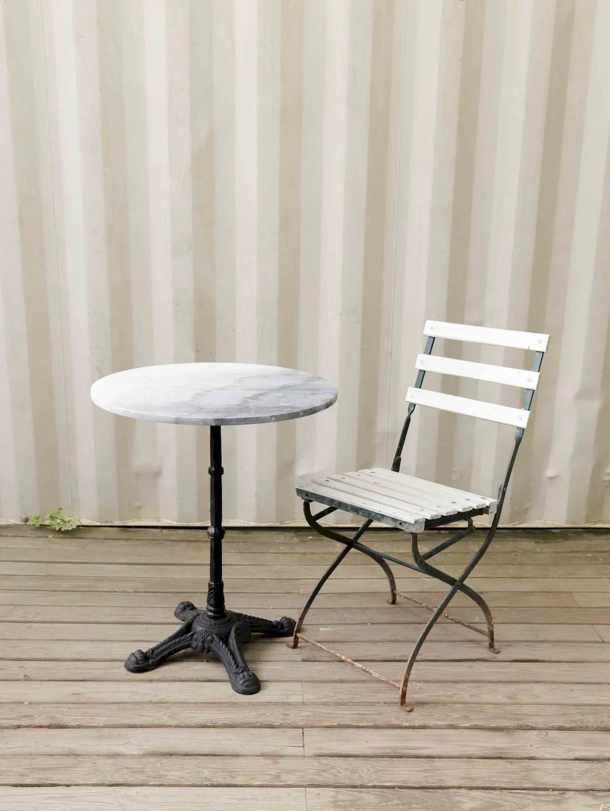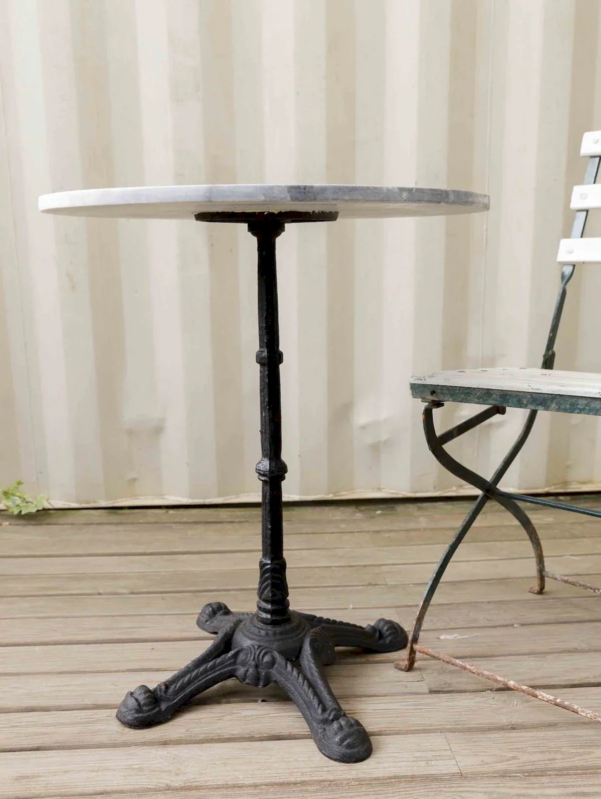 Apportez une touche d’authenticité à votre espace avec cette table bistrot grise au dessus en marbre élégant et au pied en fonte robuste. Parfaite pour recréer l'ambiance chaleureuse d’un ancien restaurant, elle allie charme rétro et solidité. Idéale pour les petits espaces ou comme pièce maîtresse dans une salle à manger, cette table est à la fois fonctionnelle et esthétique. Transformez votre intérieur avec ce meuble qui saura captiver tous les regards. Hauteur : 72 cm Diamètre : 60 cm État:Occasion: Objet ayant été utilisé. Objet présentant quelques marques d'usure superficielle, ...Occasion: Objet ayant été utilisé. Objet présentant quelques marques d'usure superficielle, entièrement opérationnel et fonctionnant correctement. Il peut s'agir d'un modèle de démonstration ou d'un objet retourné en magasin après une courte période d'utilisation. les éventuelles imperfections. Marque:Debongout Type:Produit chiné Matériau:Marbre, Métal Style:Campagne Personnalisé:Tables à manger