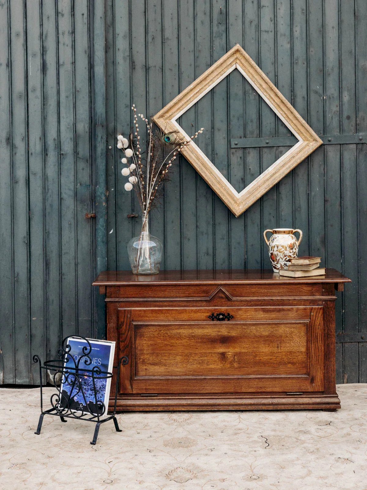 Ajoutez une touche d'élégance à votre intérieur avec notre porte-revues en fer forgé. Alliant robustesse et style, ce porte-revues offre une solution pratique pour organiser vos magazines tout en apportant une note artistique à votre décoration. Son design raffiné et ses finitions soignées en font un véritable atout pour votre salon ou votre bureau. Un indispensable pour ceux qui apprécient à la fois la fonctionnalité et le charme des matériaux authentiques. Longueur : 43 cm Hauteur : 36 cm Profondeur : 24 cm Petite histoire du porte-revues Le terme "porte-revues" apparaît au début du XXe siècle, lorsque journaux et magazines deviennent courants dans les foyers. Ce meuble, souvent en bois ou en métal, est conçu pour organiser et exposer les publications imprimées. D'abord présent dans les salons et salles d'attente, il incarne l'ordre et l'accès à la culture. Aujourd'hui, le porte-revues s'adapte à tous les styles d'intérieur, offrant une touche décorative bien pratique. État:Occasion: Objet ayant été utilisé. Objet présentant quelques marques d'usure superficielle, ...Occasion: Objet ayant été utilisé. Objet présentant quelques marques d'usure superficielle, entièrement opérationnel et fonctionnant correctement. Il peut s'agir d'un modèle de démonstration ou d'un objet retourné en magasin après une courte période d'utilisation. les éventuelles imperfections. Marque:Debongout Type:Produit chiné Matériau:Fer Style:Campagne