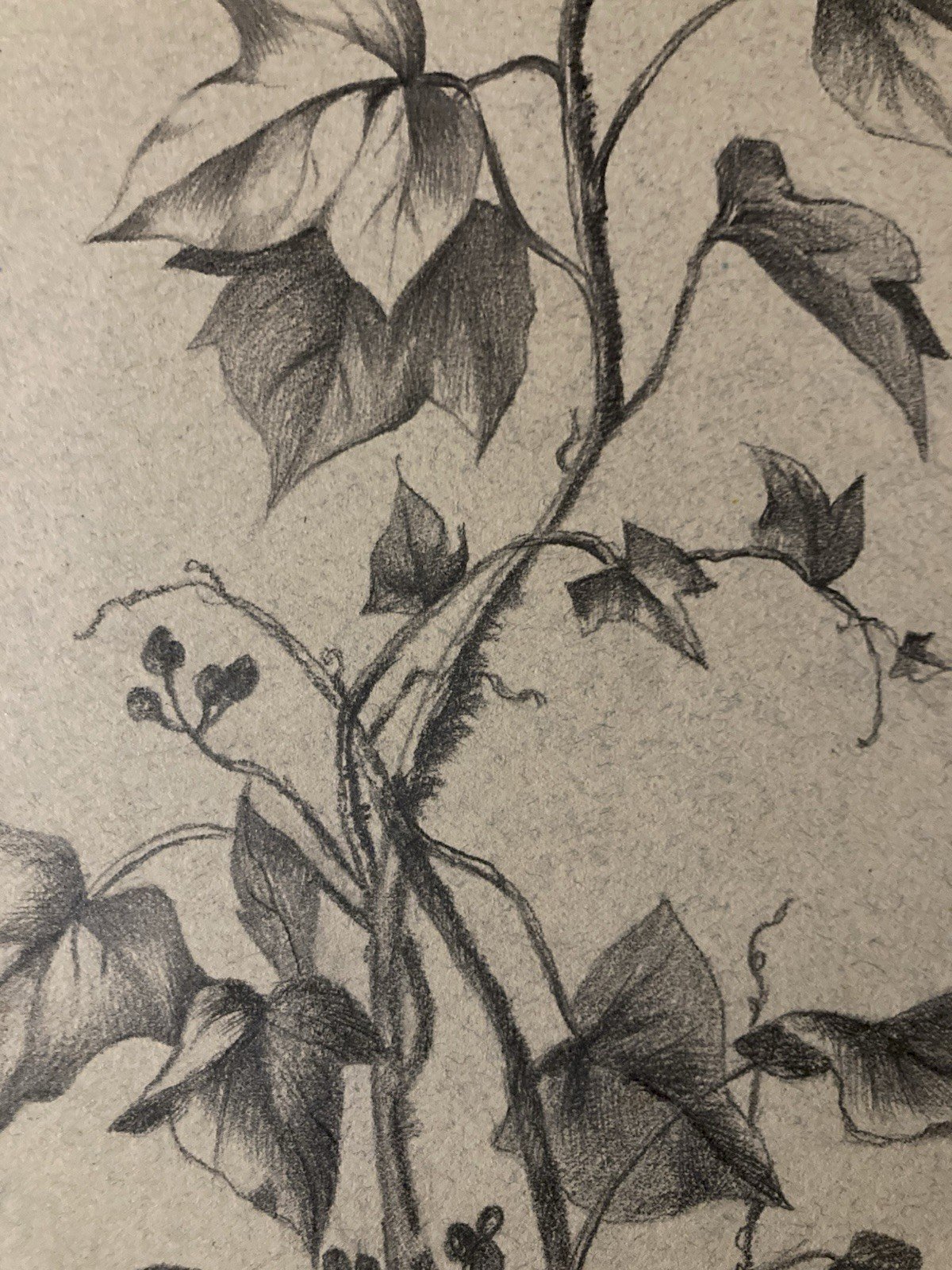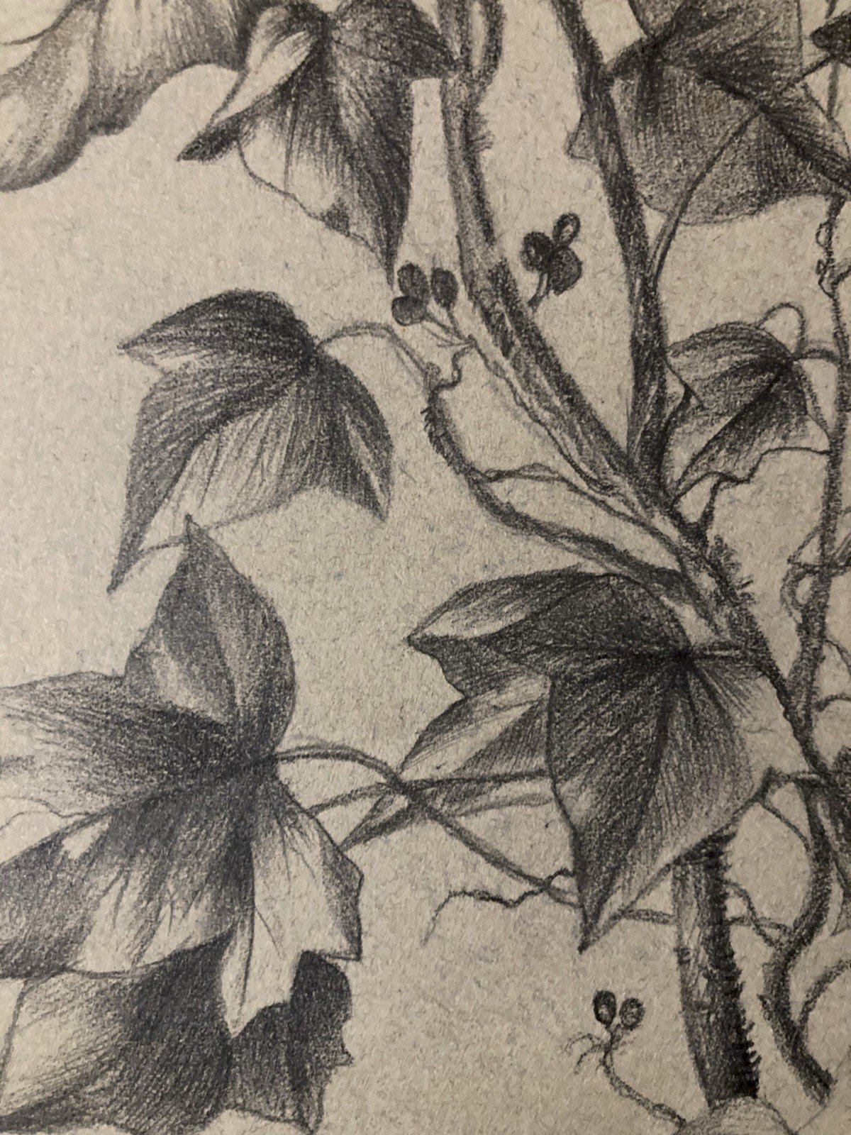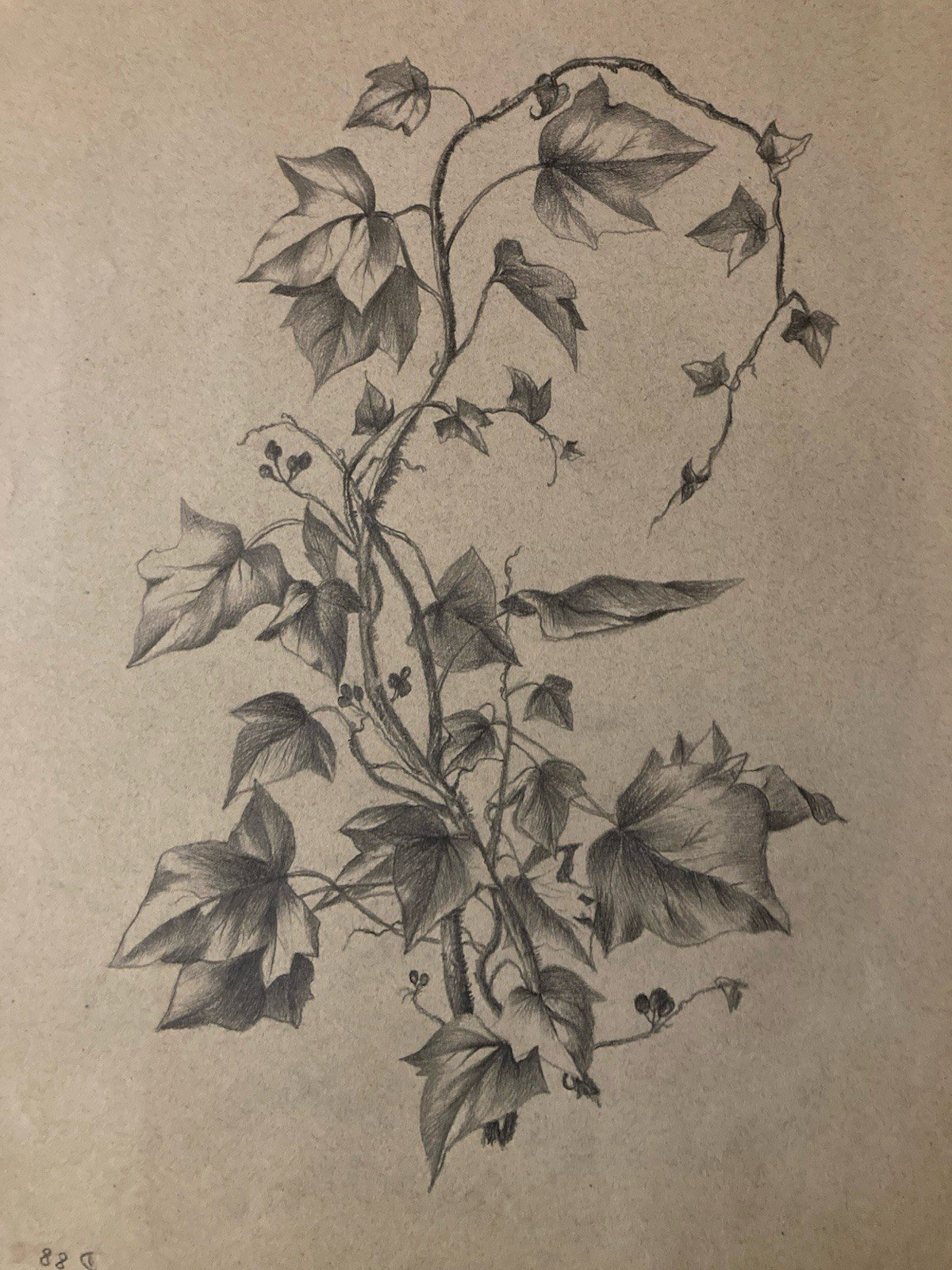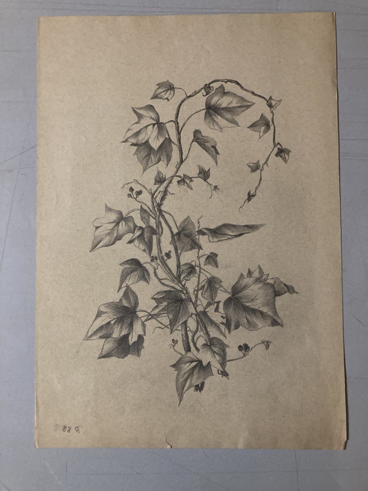 Dessin 1920 Fleur Fleurs Crayon Lierre Plante Art Nouveau Herbier Ancien