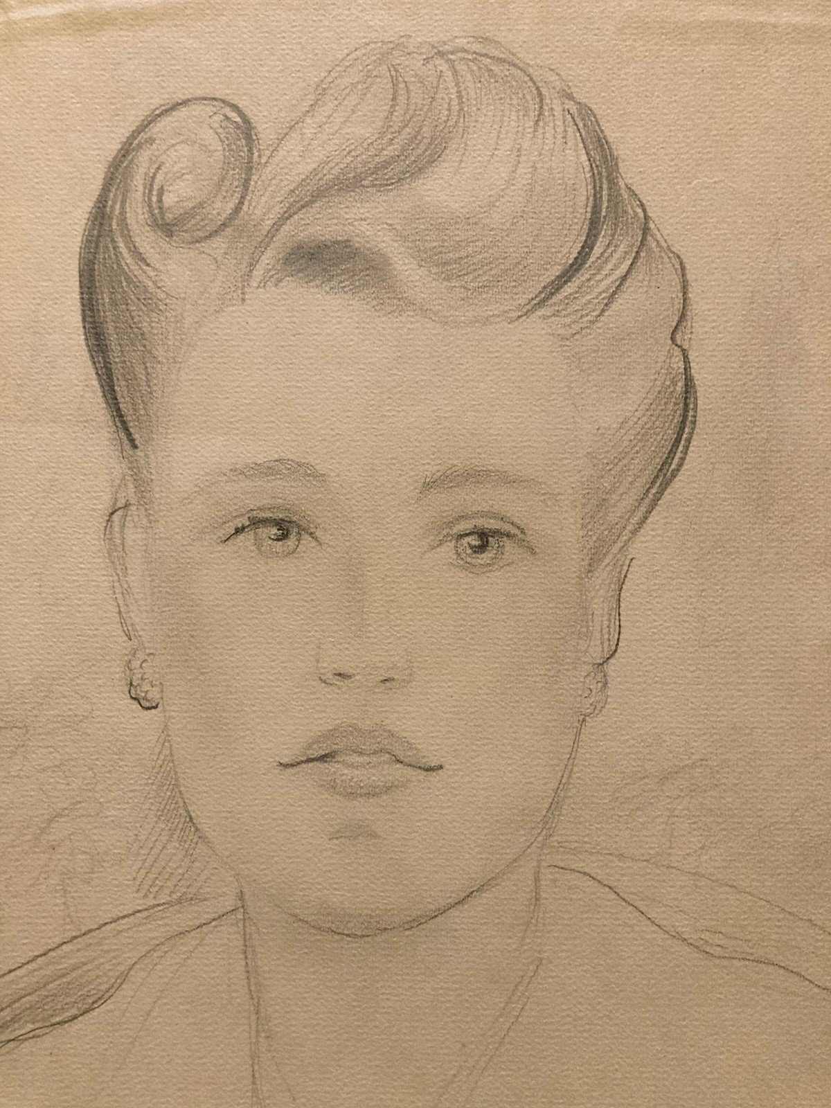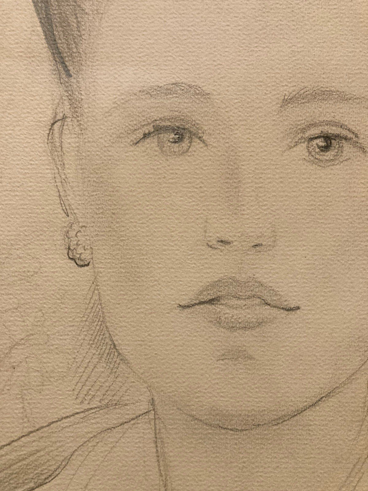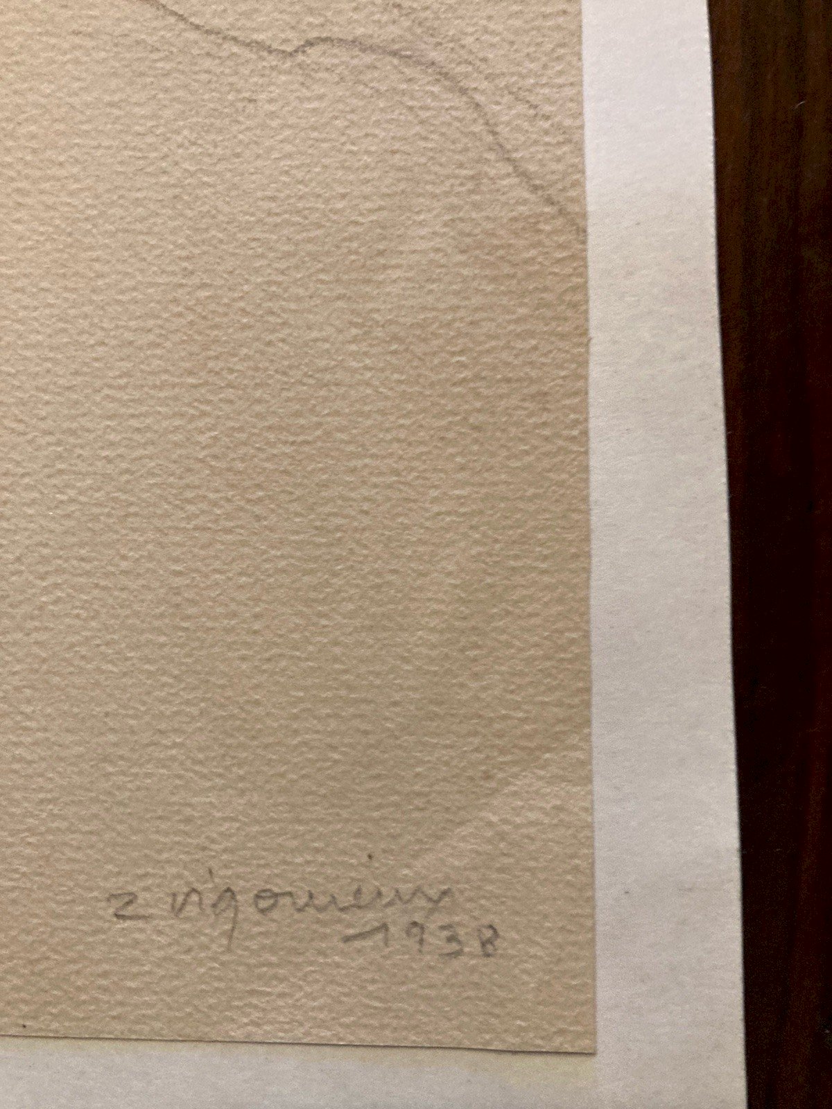 Dessin 1938 Portrait Buste Zina VIGOUREUX Art ancien Femme crayon Cheveux XXe