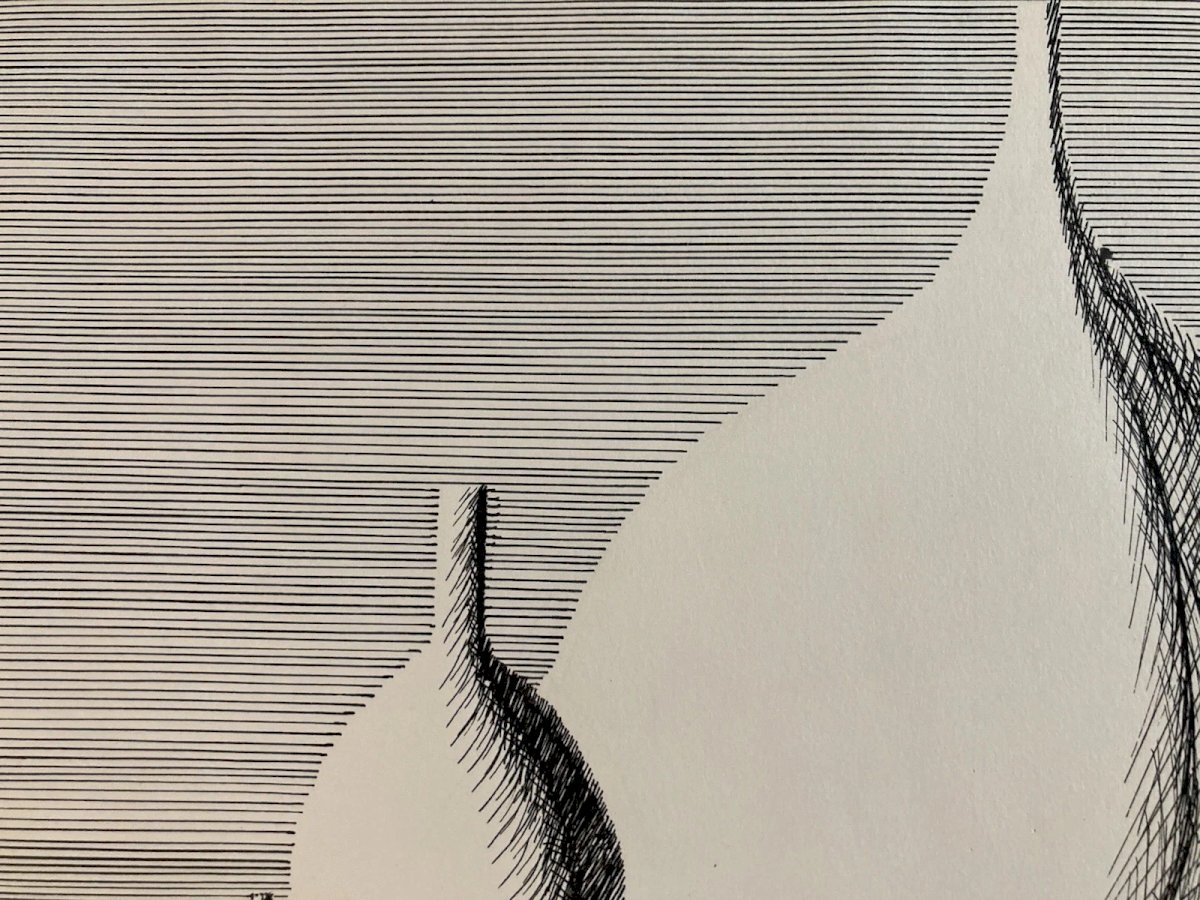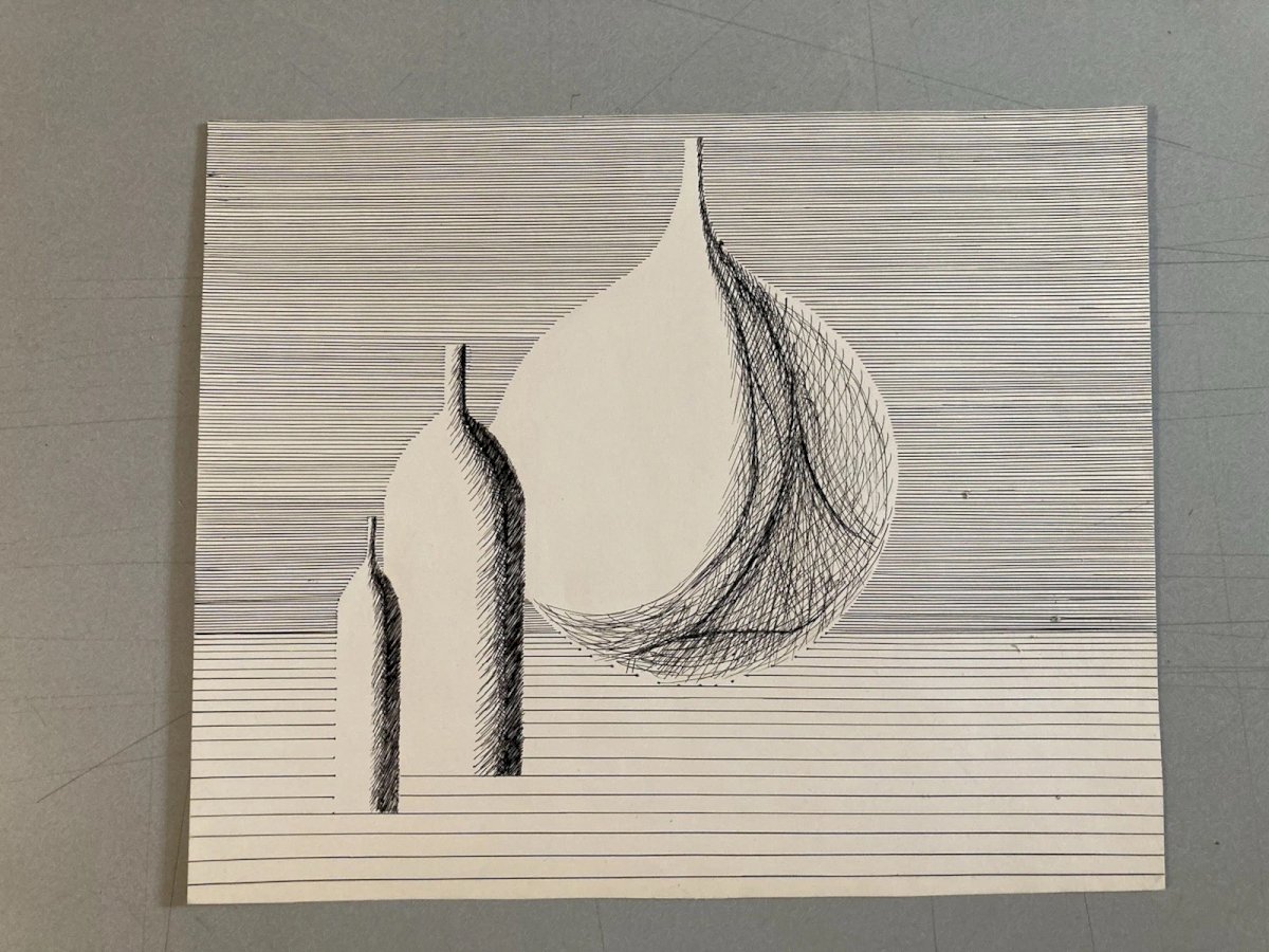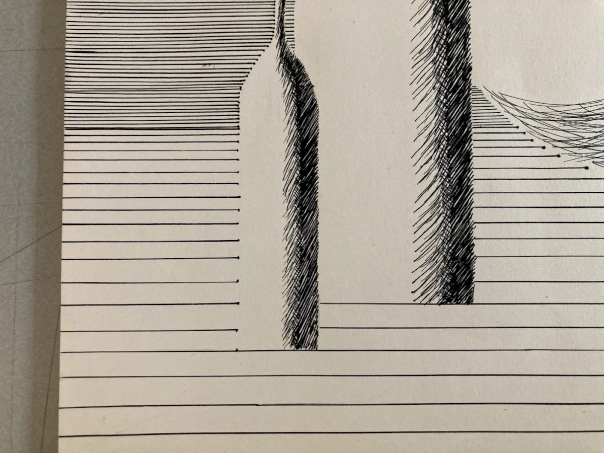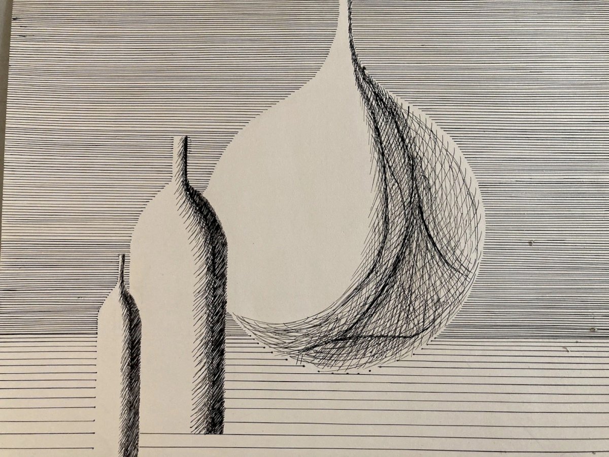 Dessin 1960 Encre Papier Cubiste Post Cubisme Nature Morte Aux Bouteilles