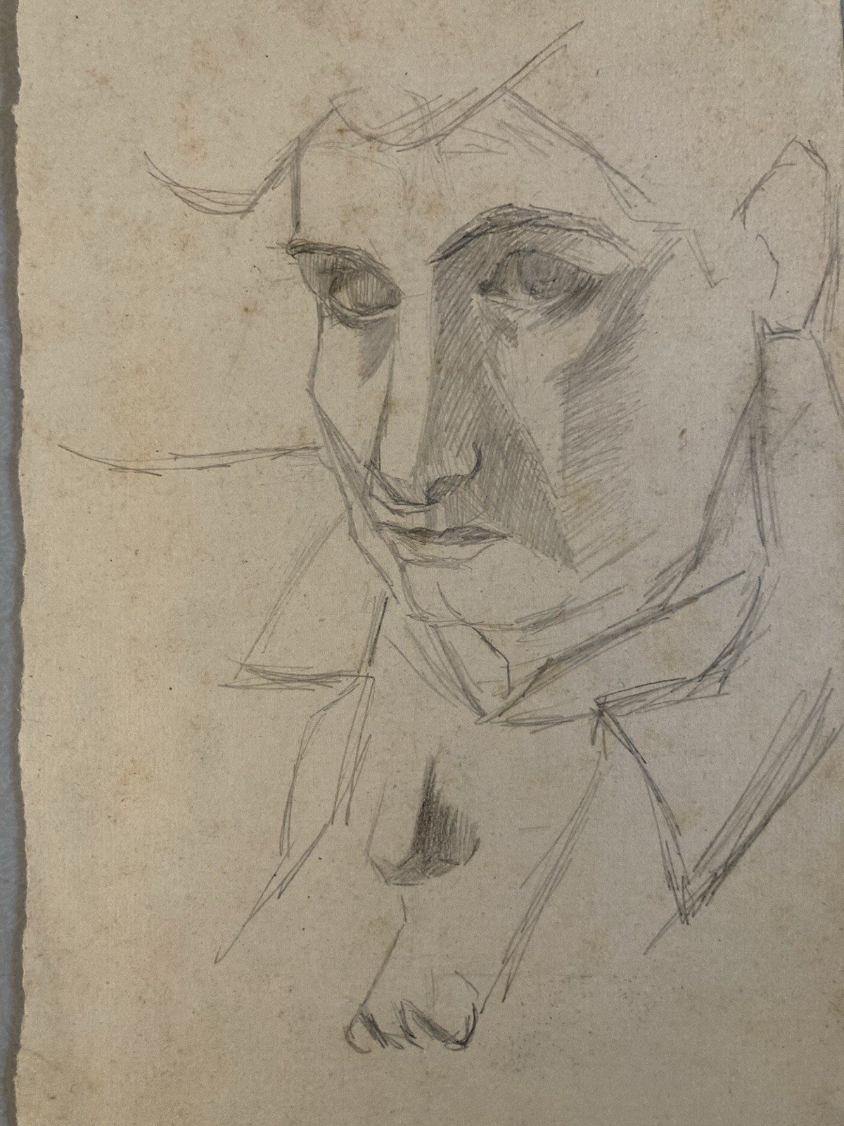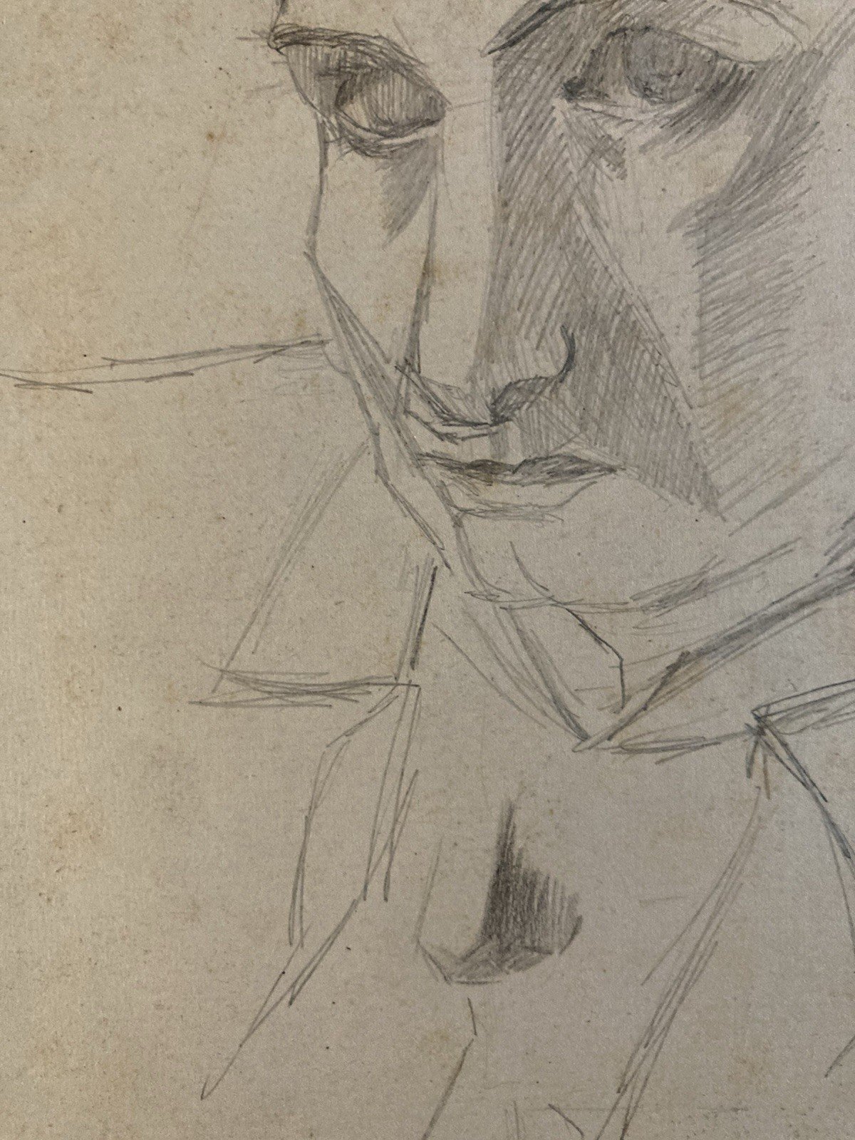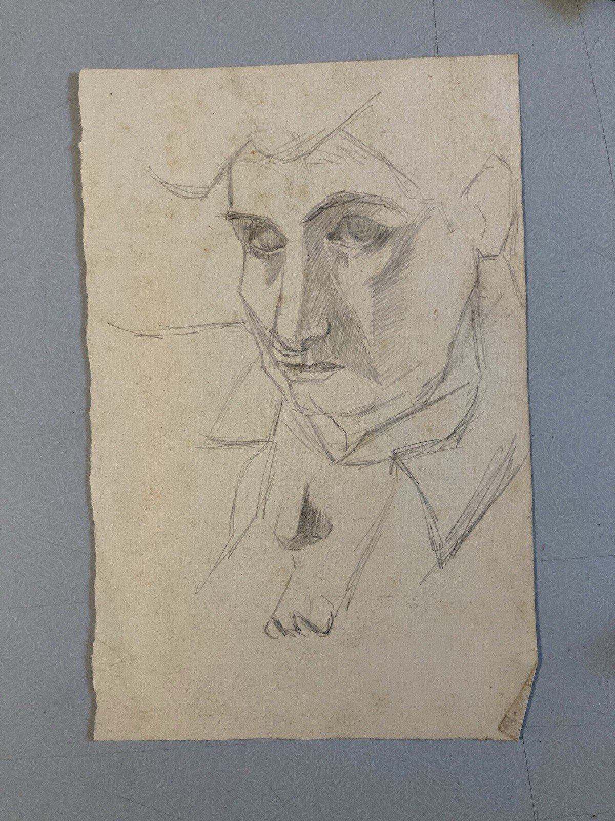 Dessin ancien cubiste Mine De Plomb Crayon cubisme 1950 A Identifier Portrait