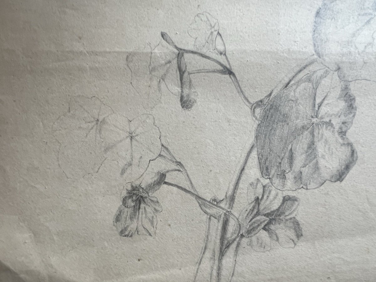 Dessin Ancien Etude Capucines Crayon Sur Papier Ancien XIXème Étude Naturaliste