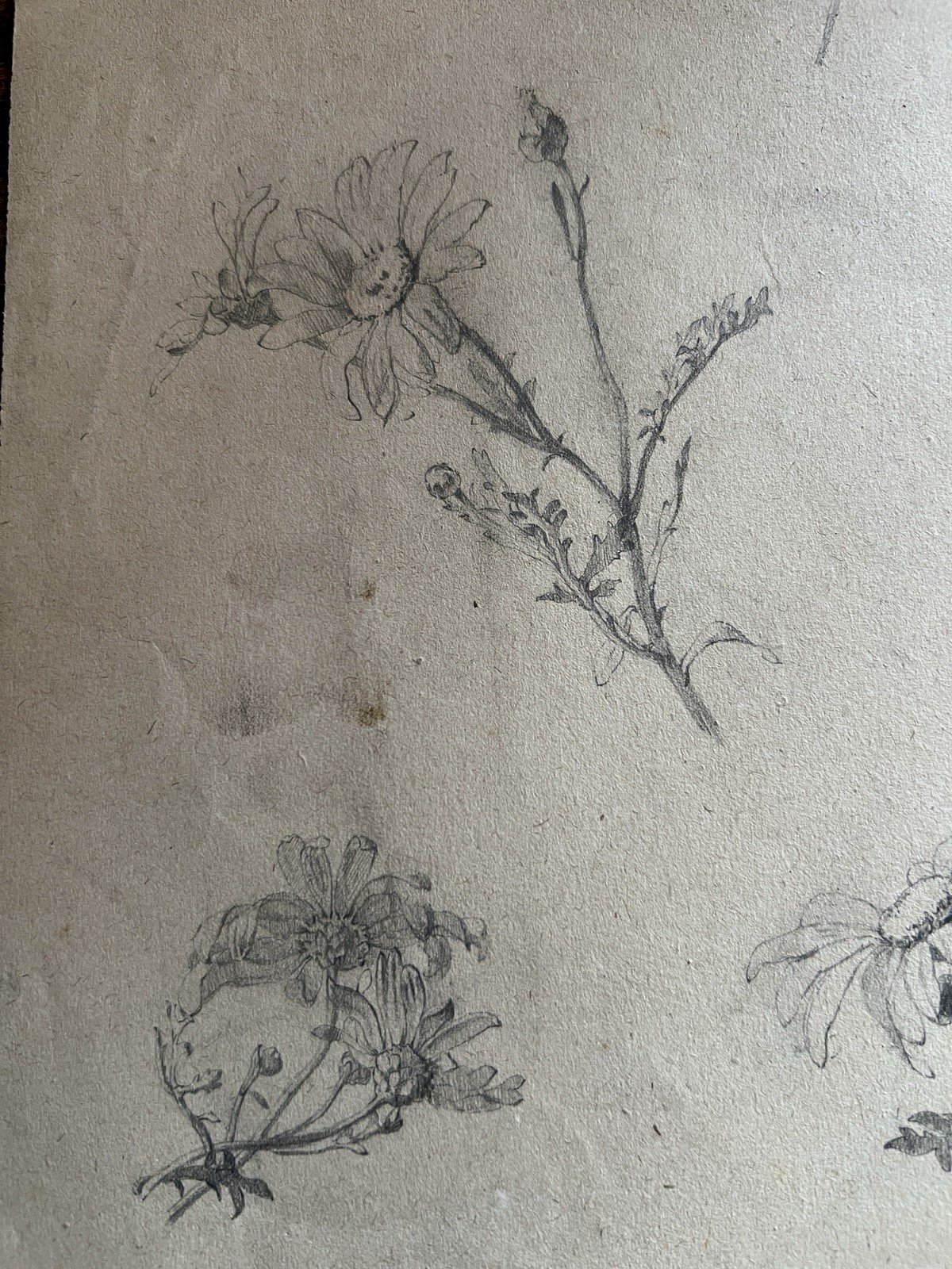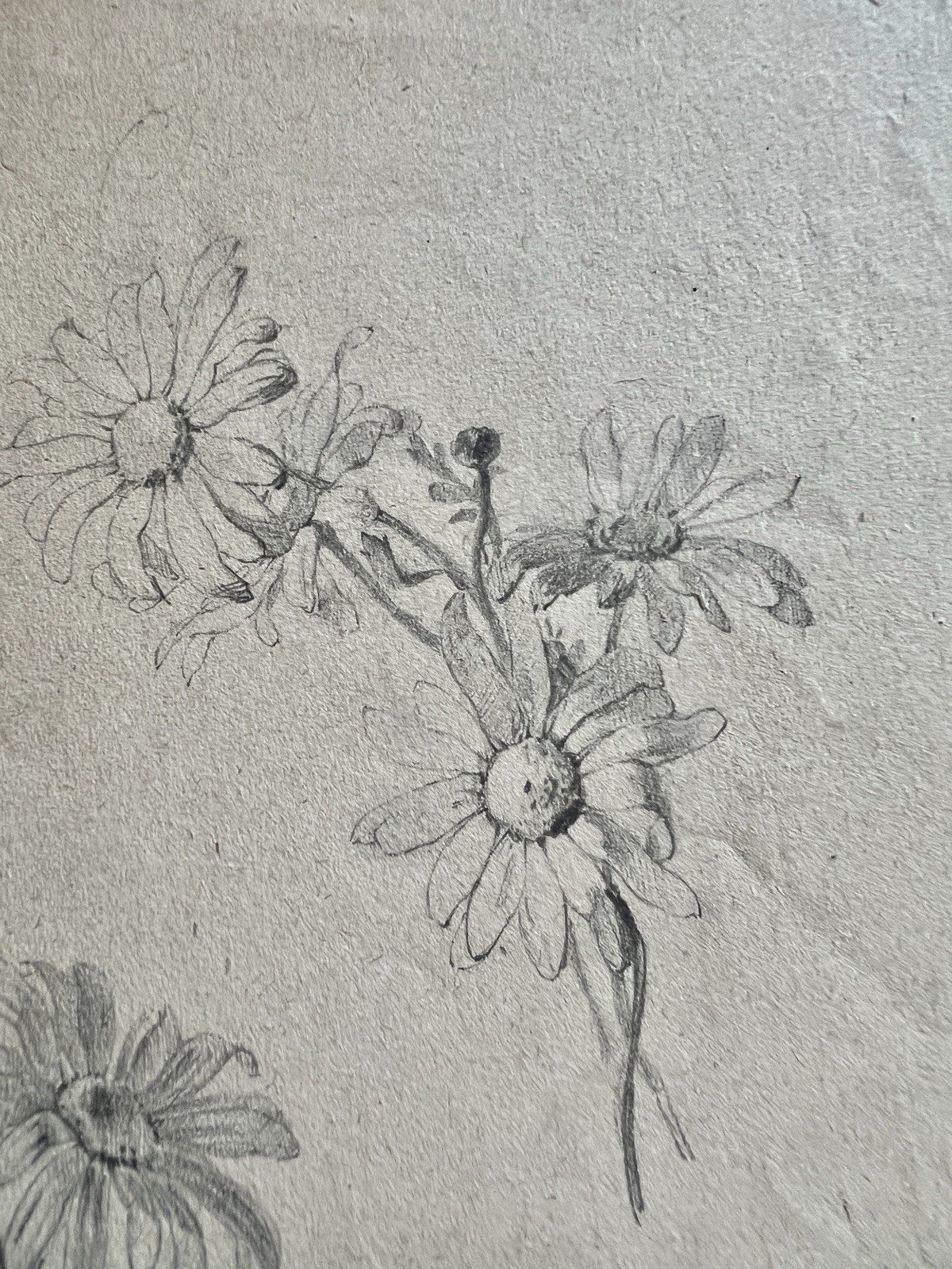 Dessin Ancien Etude Marguerite Crayon Sur Papier Ancien XIXème Étude Naturaliste