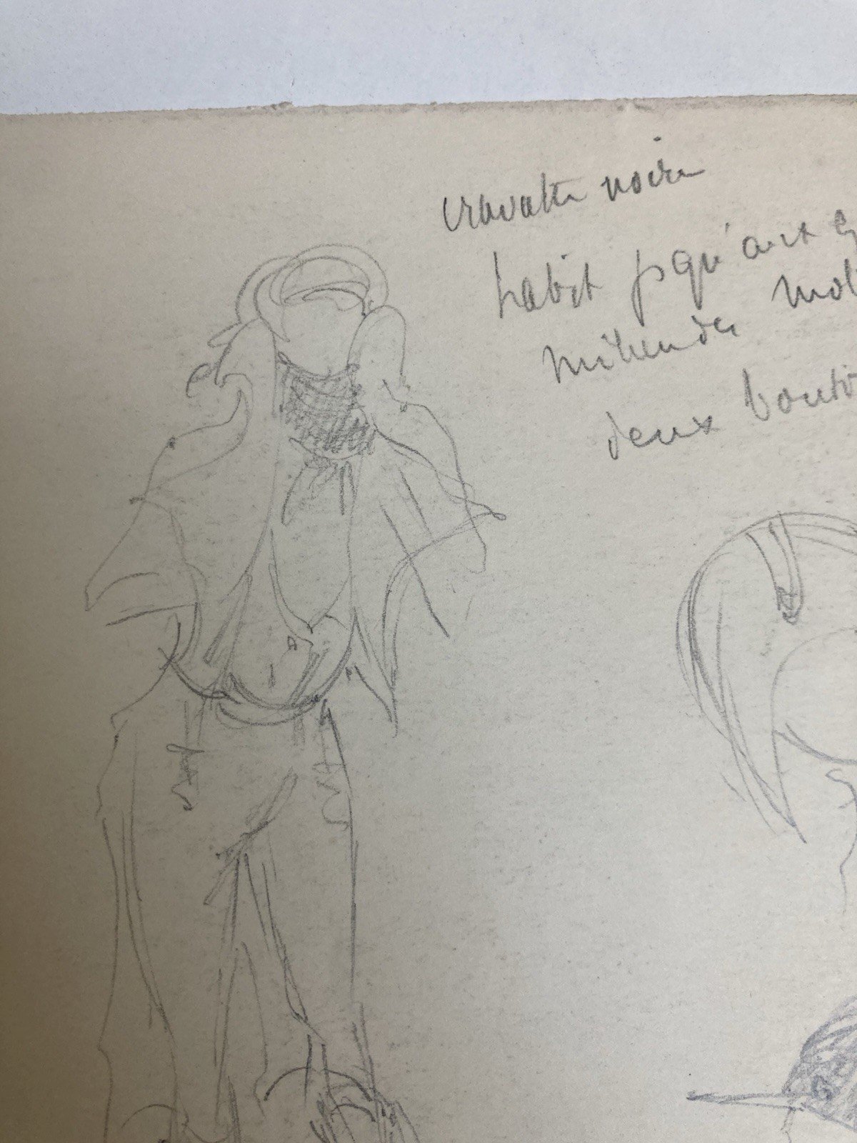 Dessin Ancien Original Crayon 1830 XIXe Jules Robert Auguste Étude Jeu De Cartes