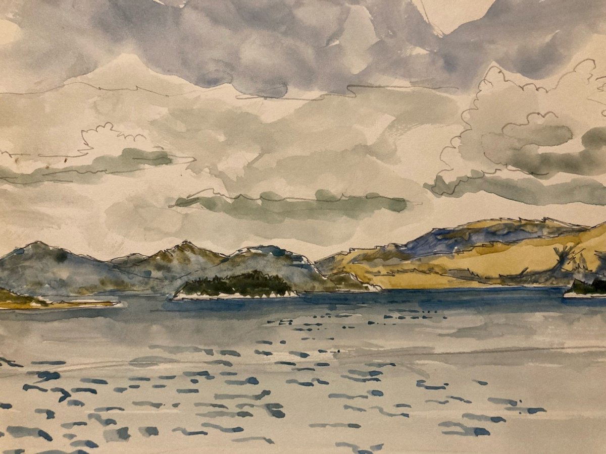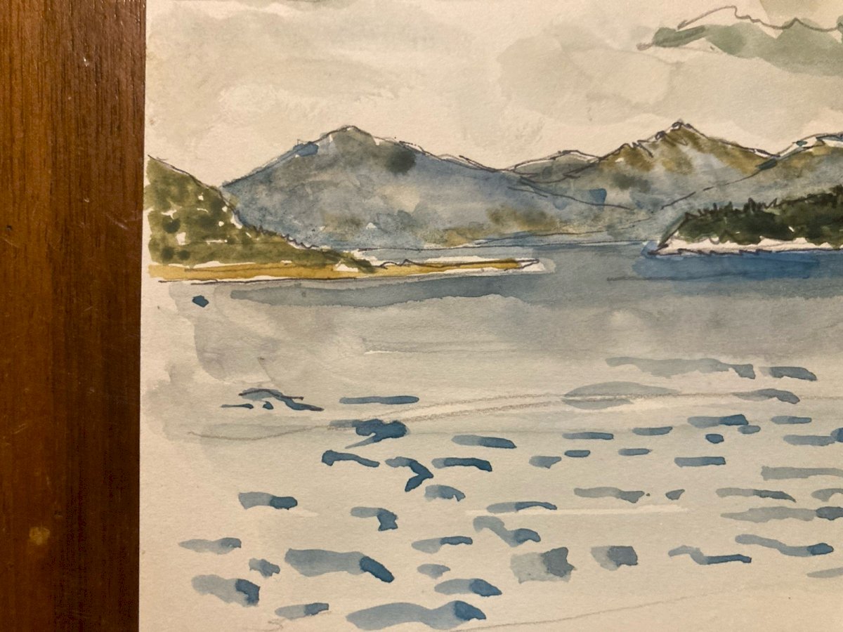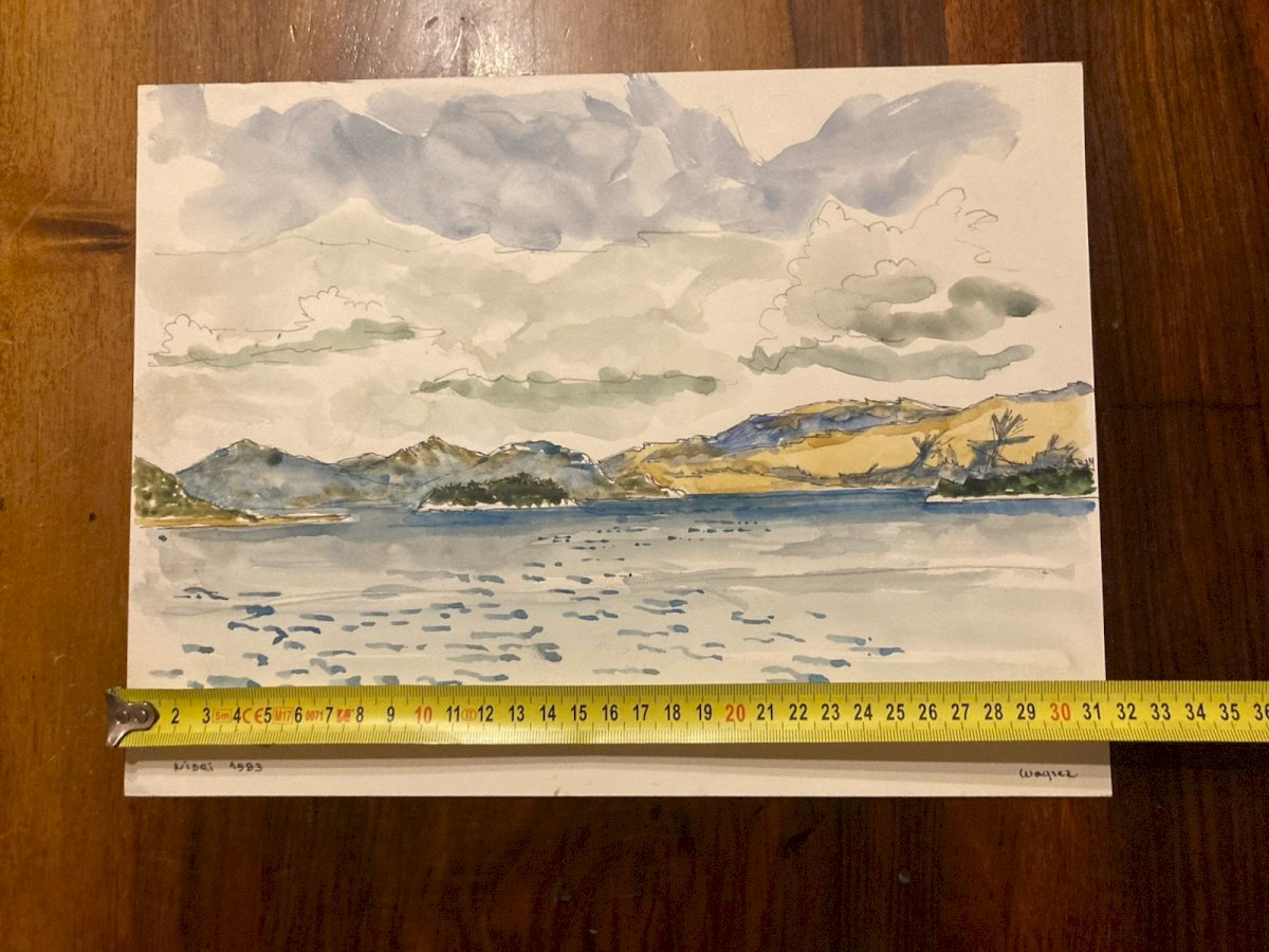 Dessin Aquarelle Paysage Peinture Leucade Grèce Village 1983 Nidri Art