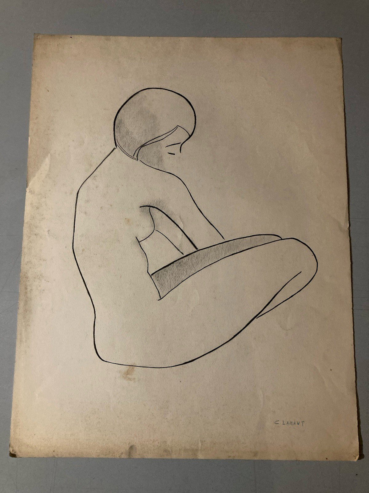 Dessin Art 1960 Sur Papier Femme Nue Nu Atelier Crayon Minimaliste Cubisme