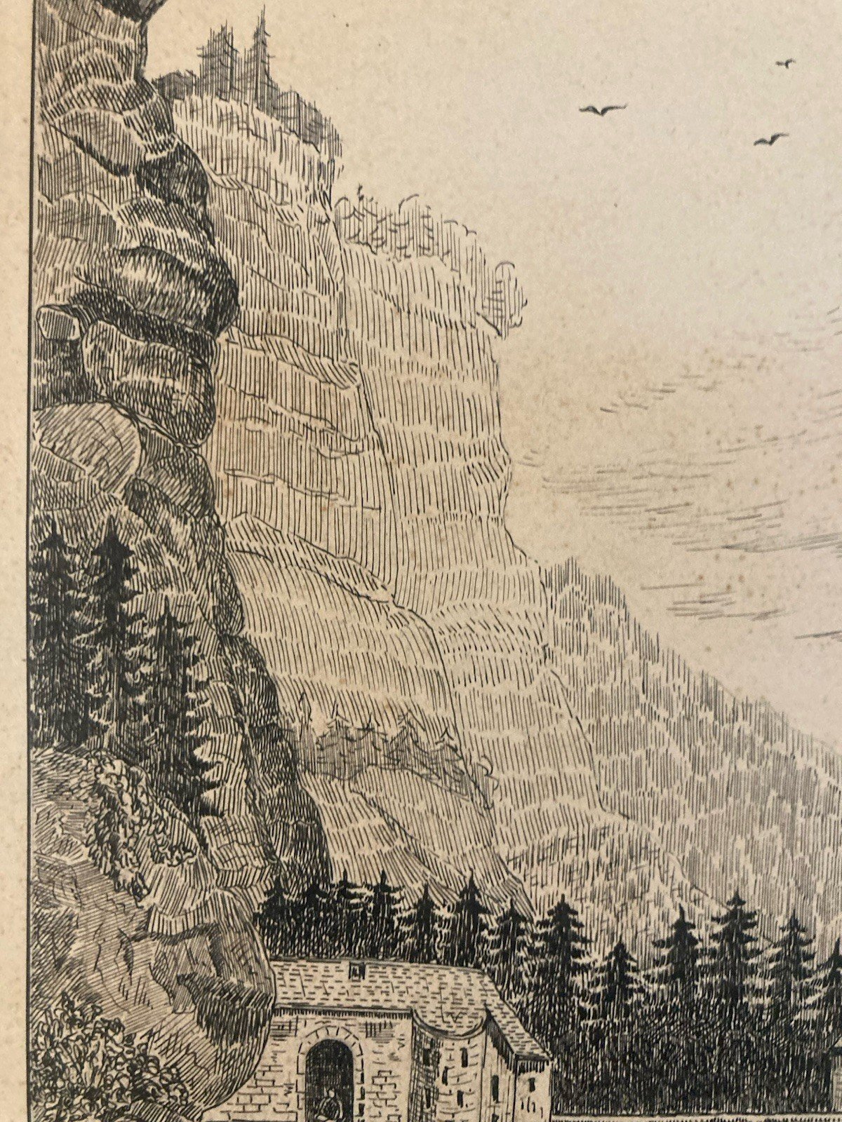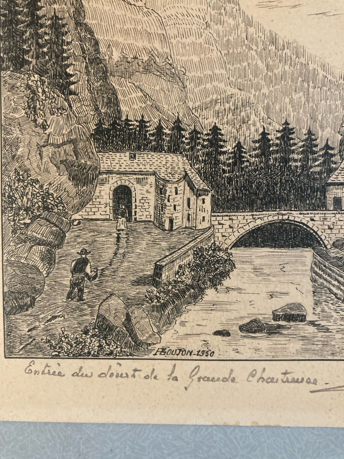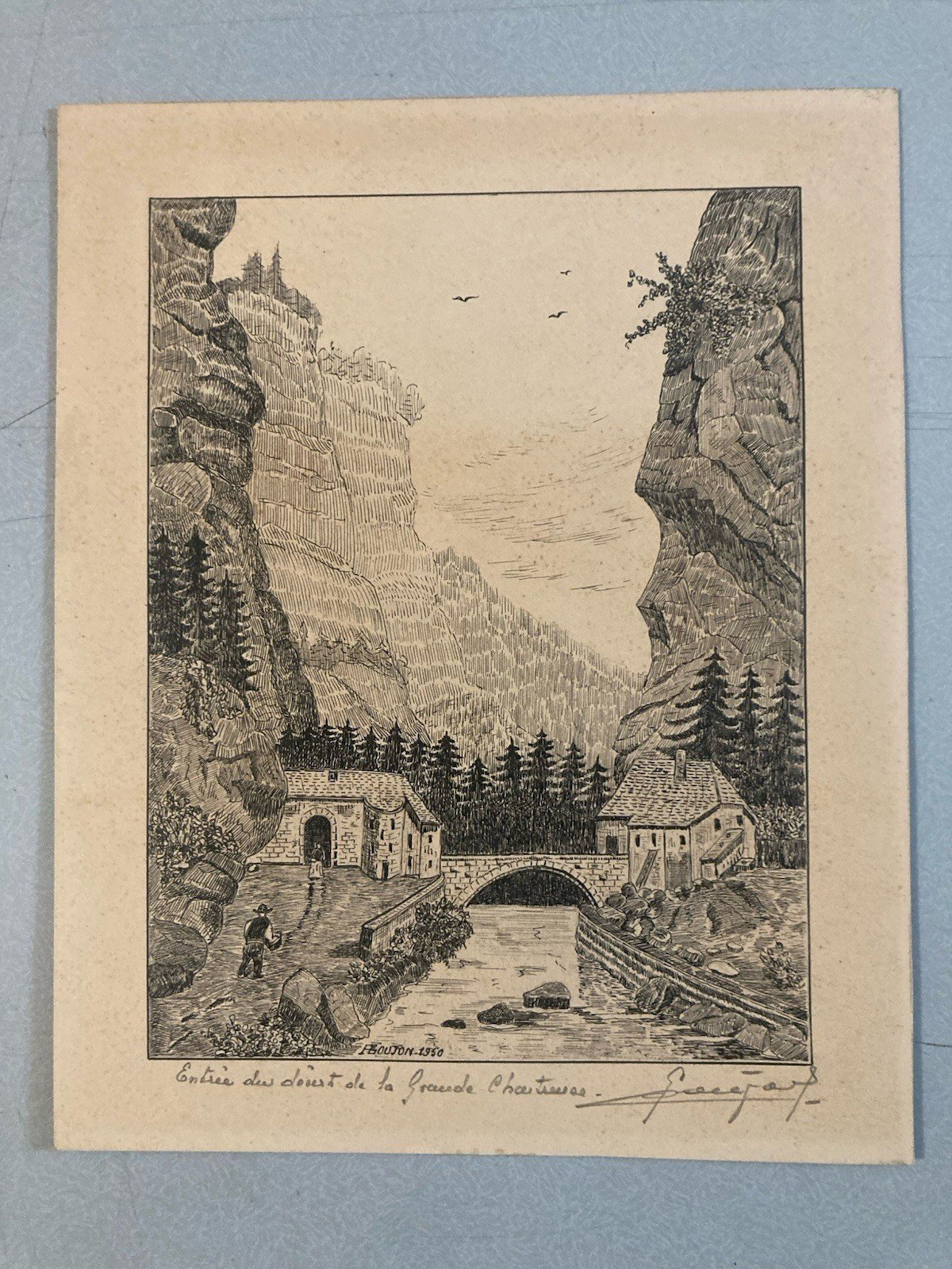 Dessin Art Brut Naïf Encre 1950 Papier Entrée Du Désert De La Grande Chartreuse