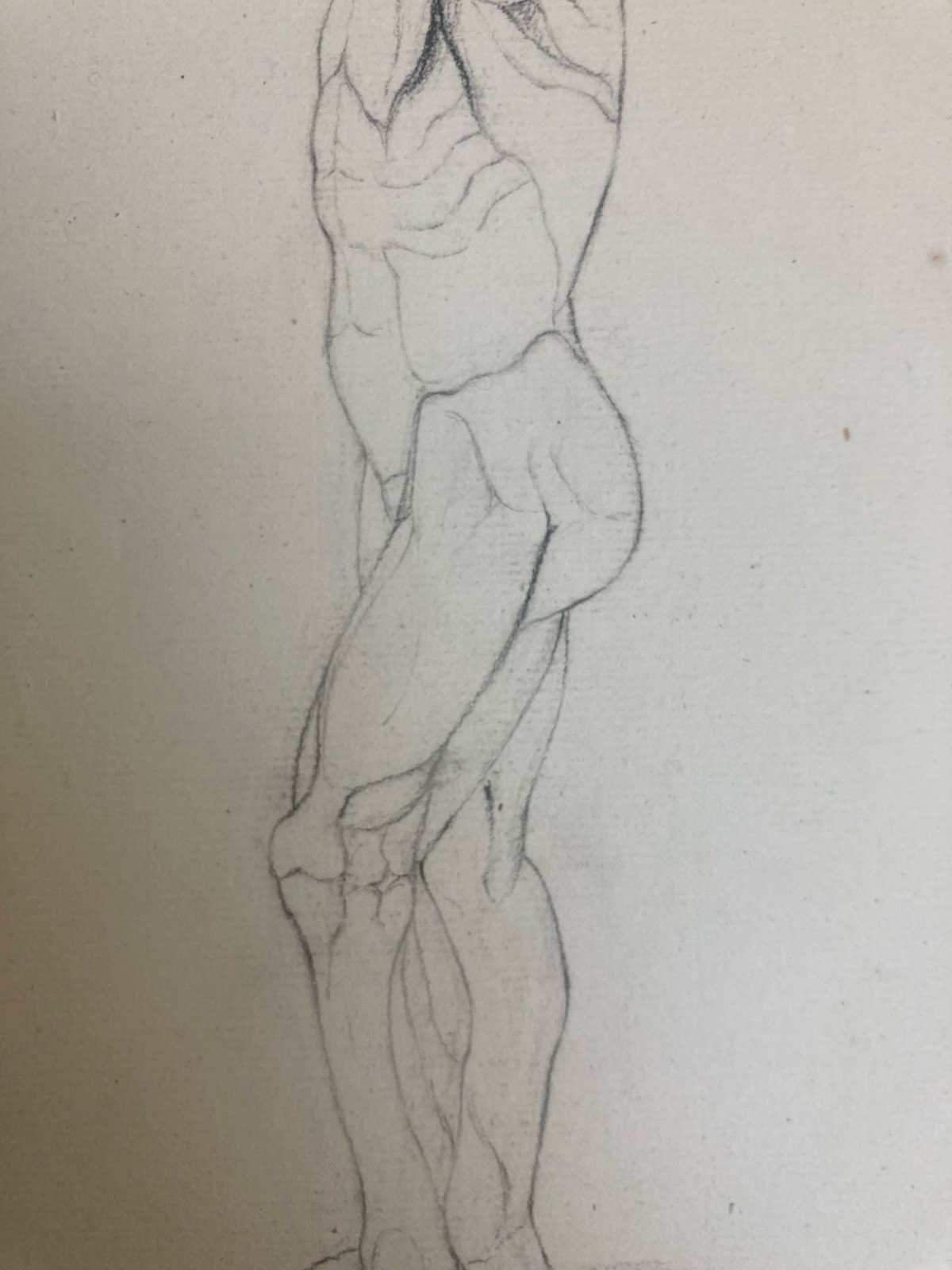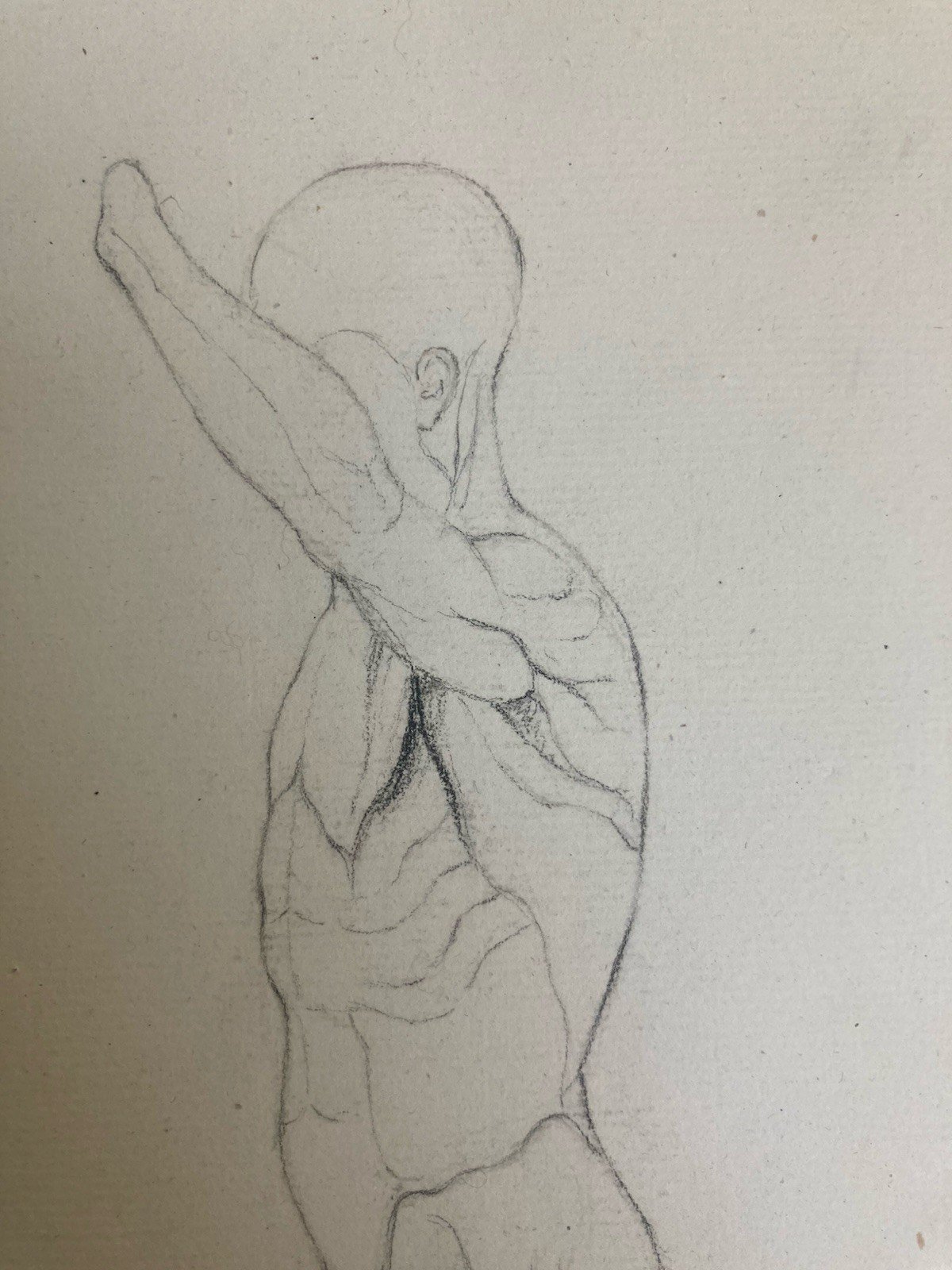 Dessin Art écorché anatomie à la main crayon Muscle 1850 Curiosité Corps