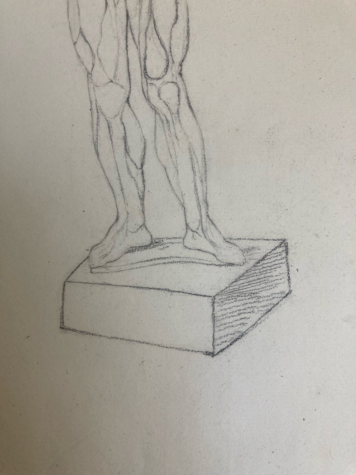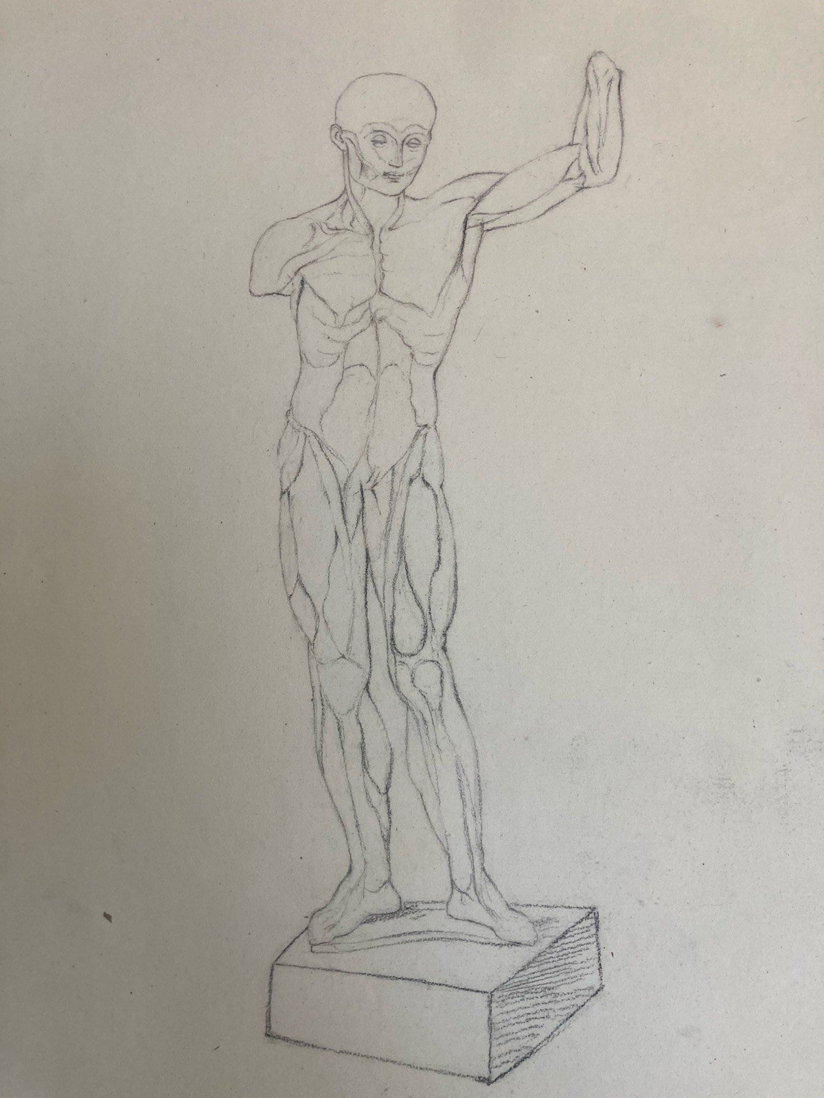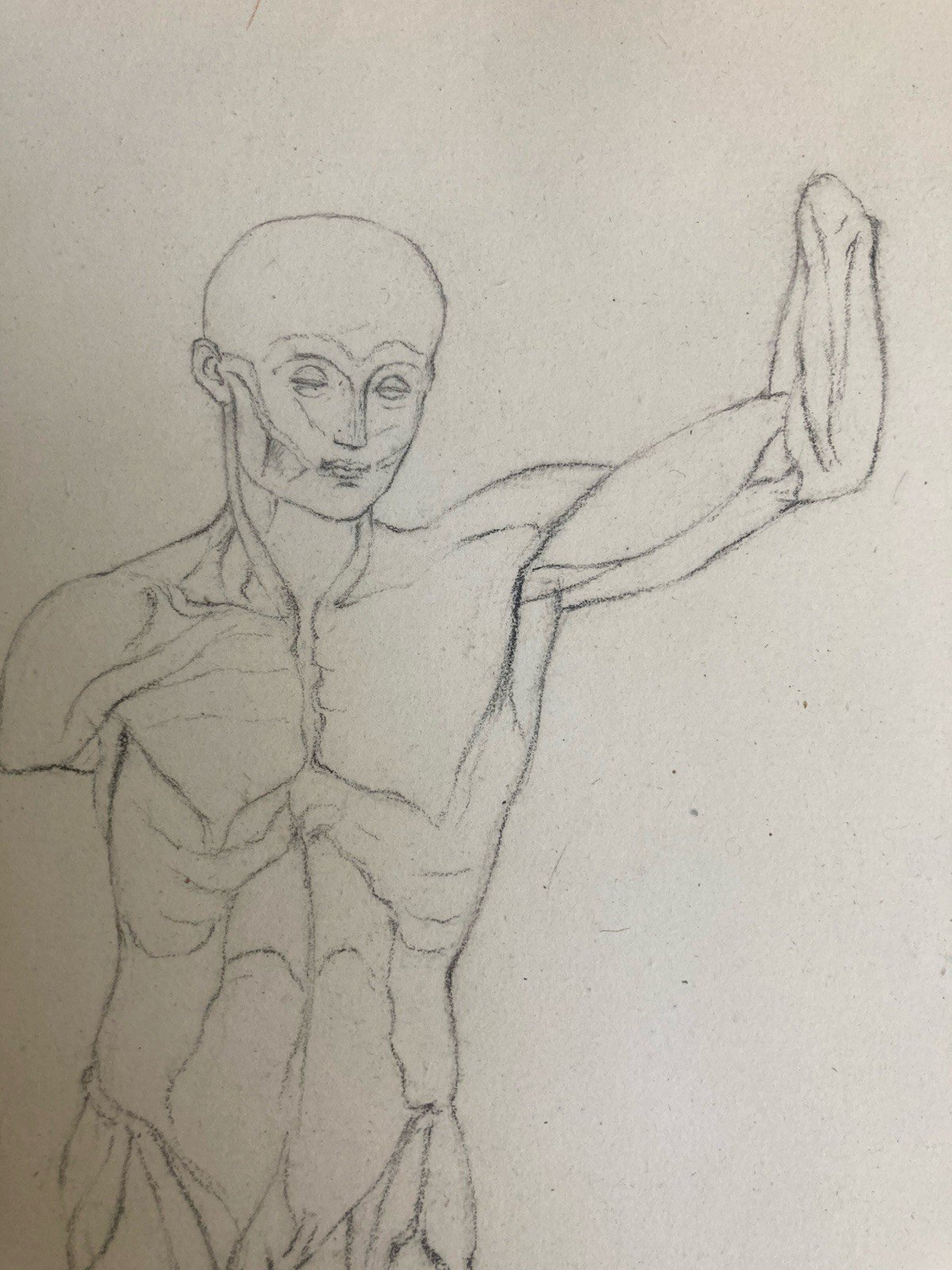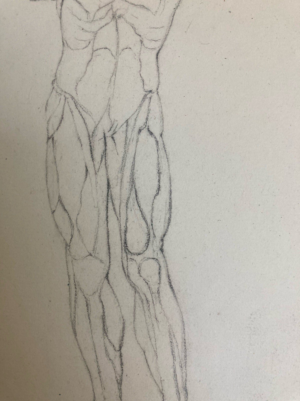 Dessin Art écorché anatomie à la main crayon Muscle 1850 Curiosité Corps XIXe