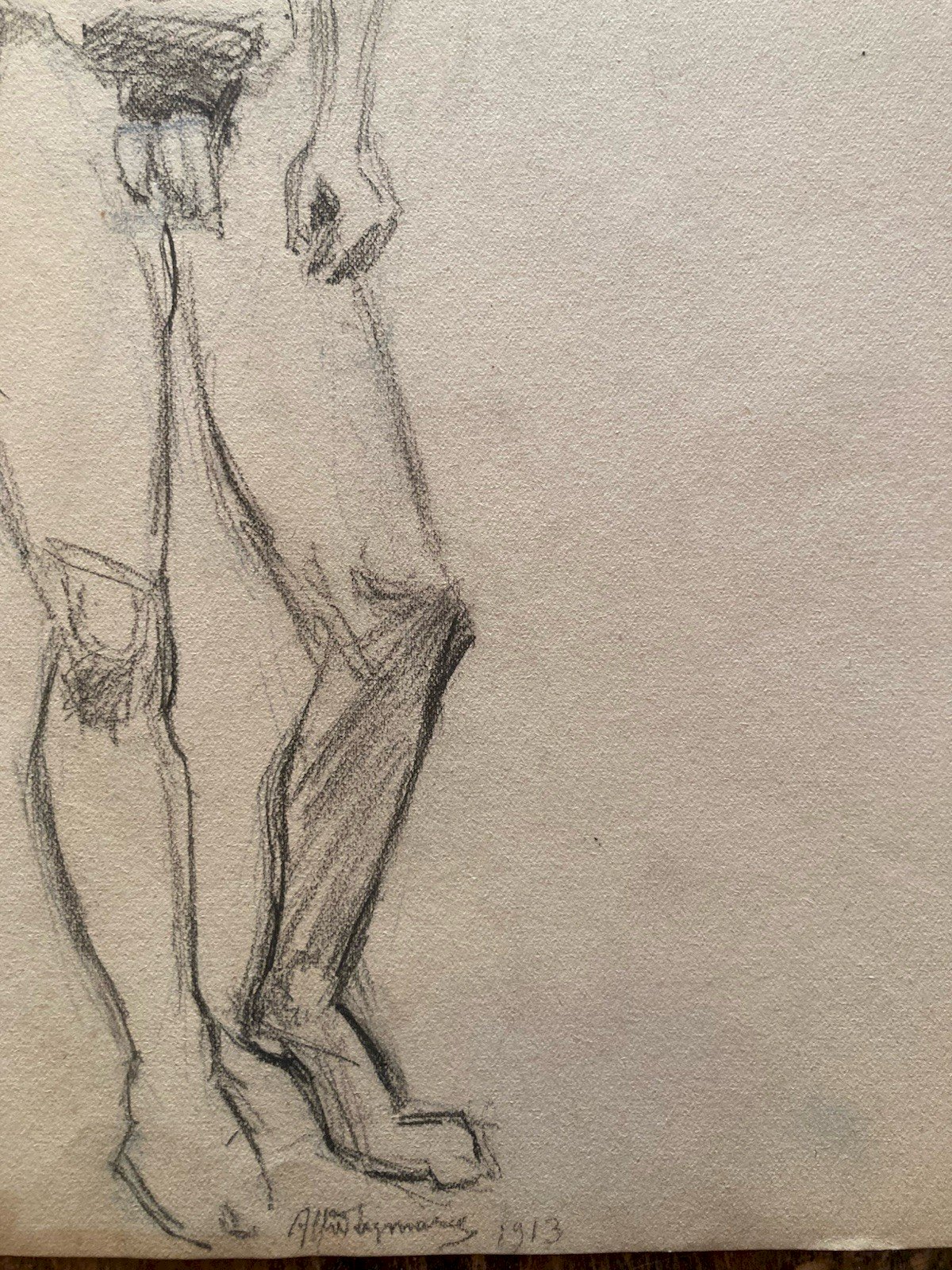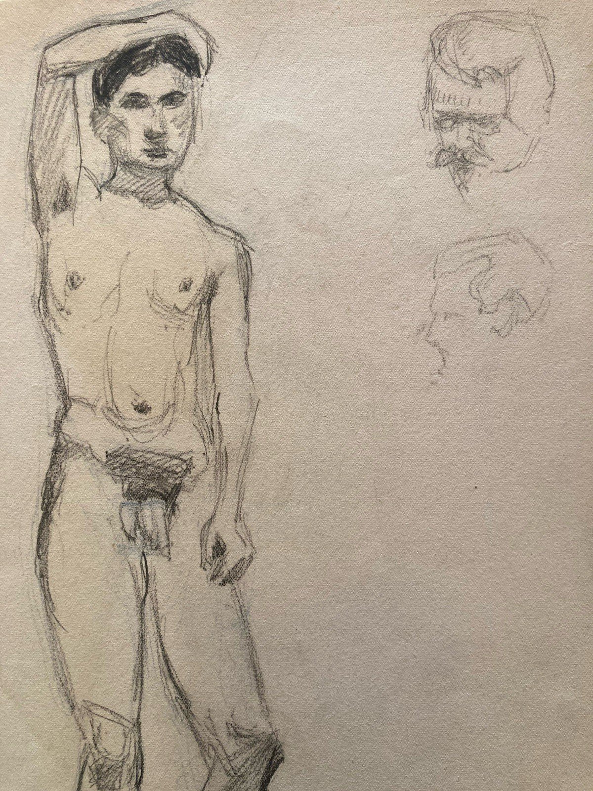 Dessin Atelier Alfred Leymarie Art Deco Nu Homme Crayon Papier Erotisme 1910