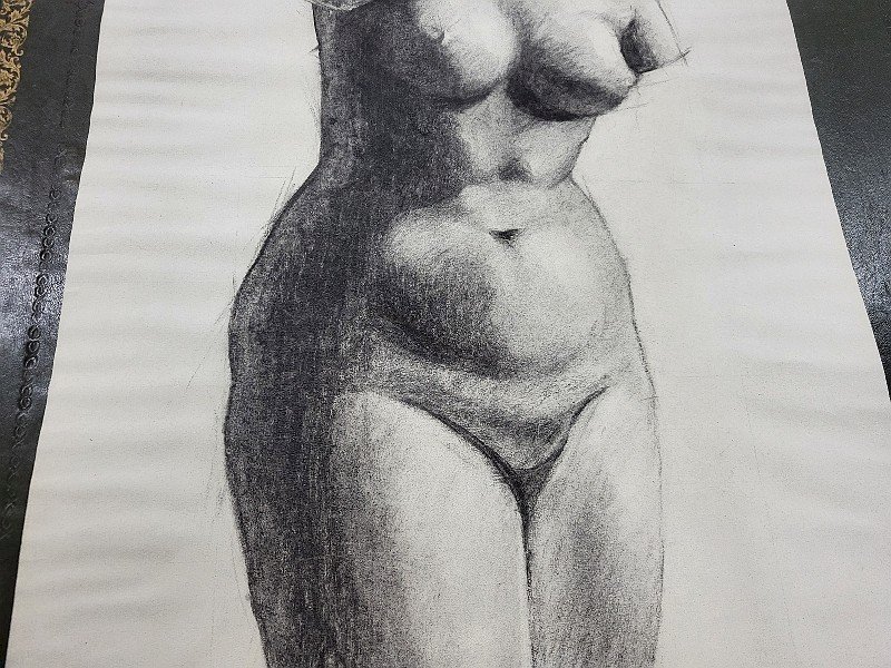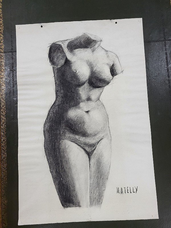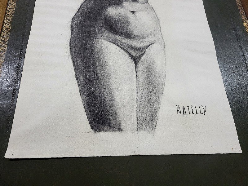 DESSIN AU CRAYON D'UN NU SUR PAPIER SIGNE MATELLY