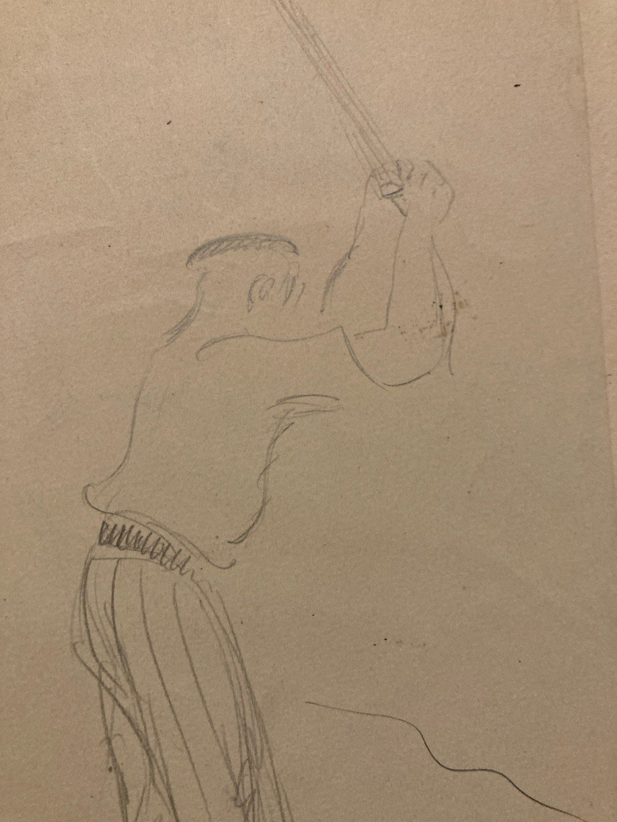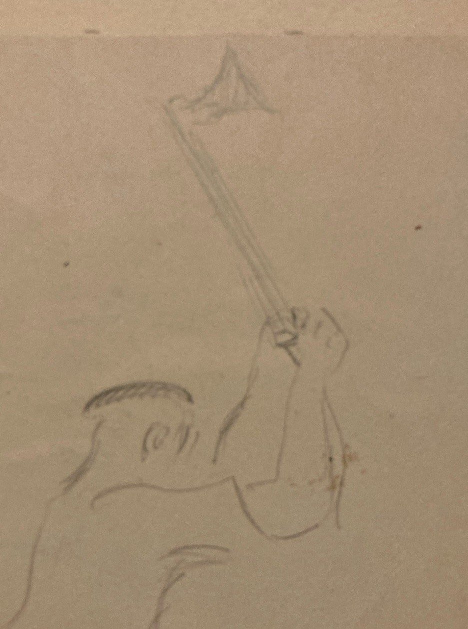 Dessin Bûcheron Jean DORVILLE Bucheron Art Crayon 1950 homme portrait Portrait