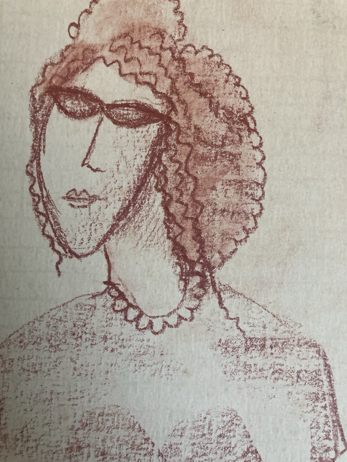 Dessin Contemporain Portrait Papier À Identifier Femme Crayon Craie Grasse Art