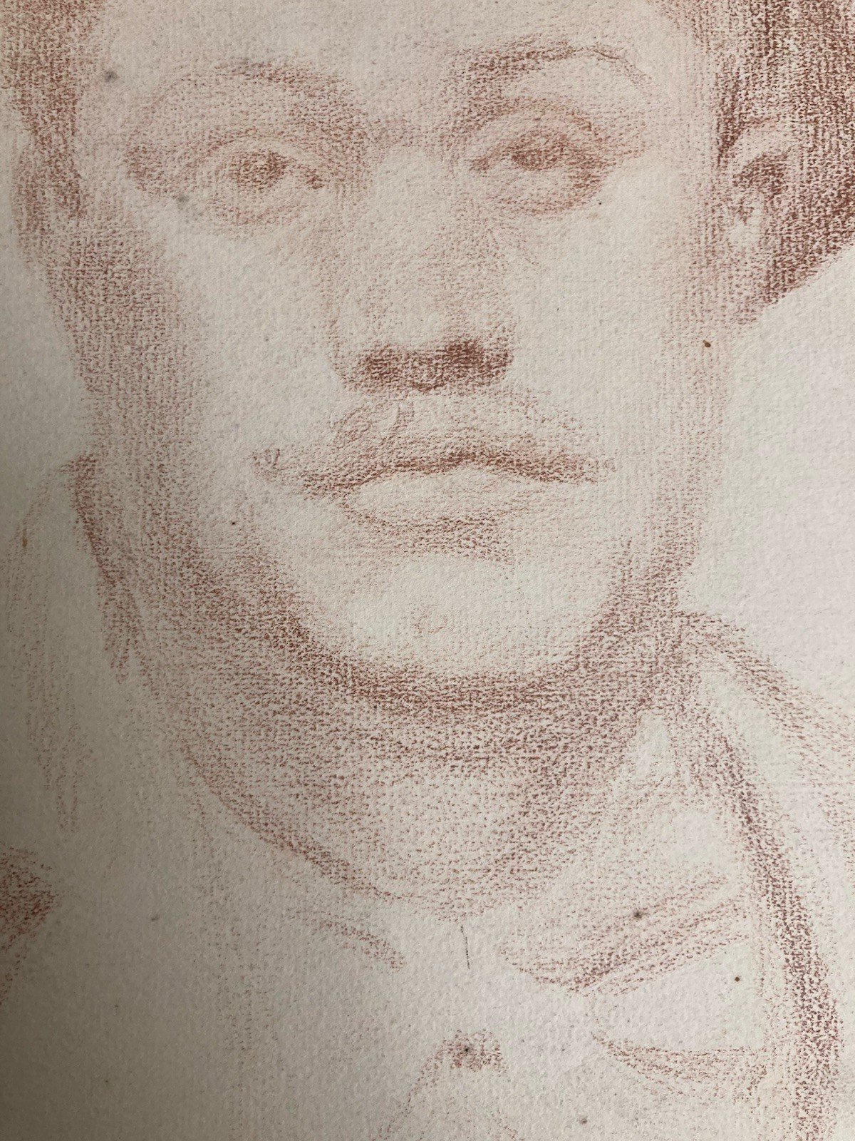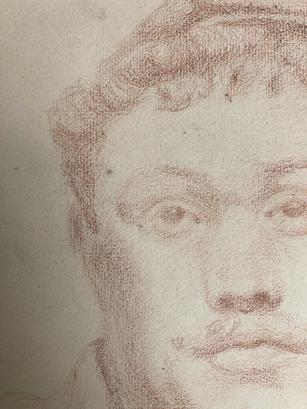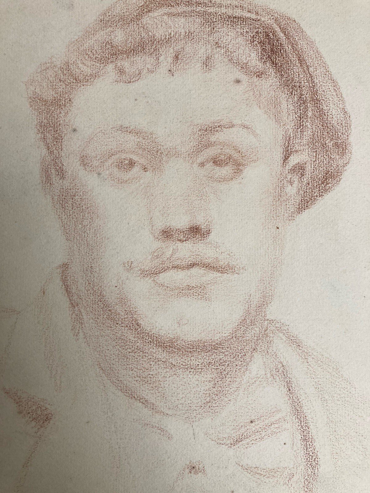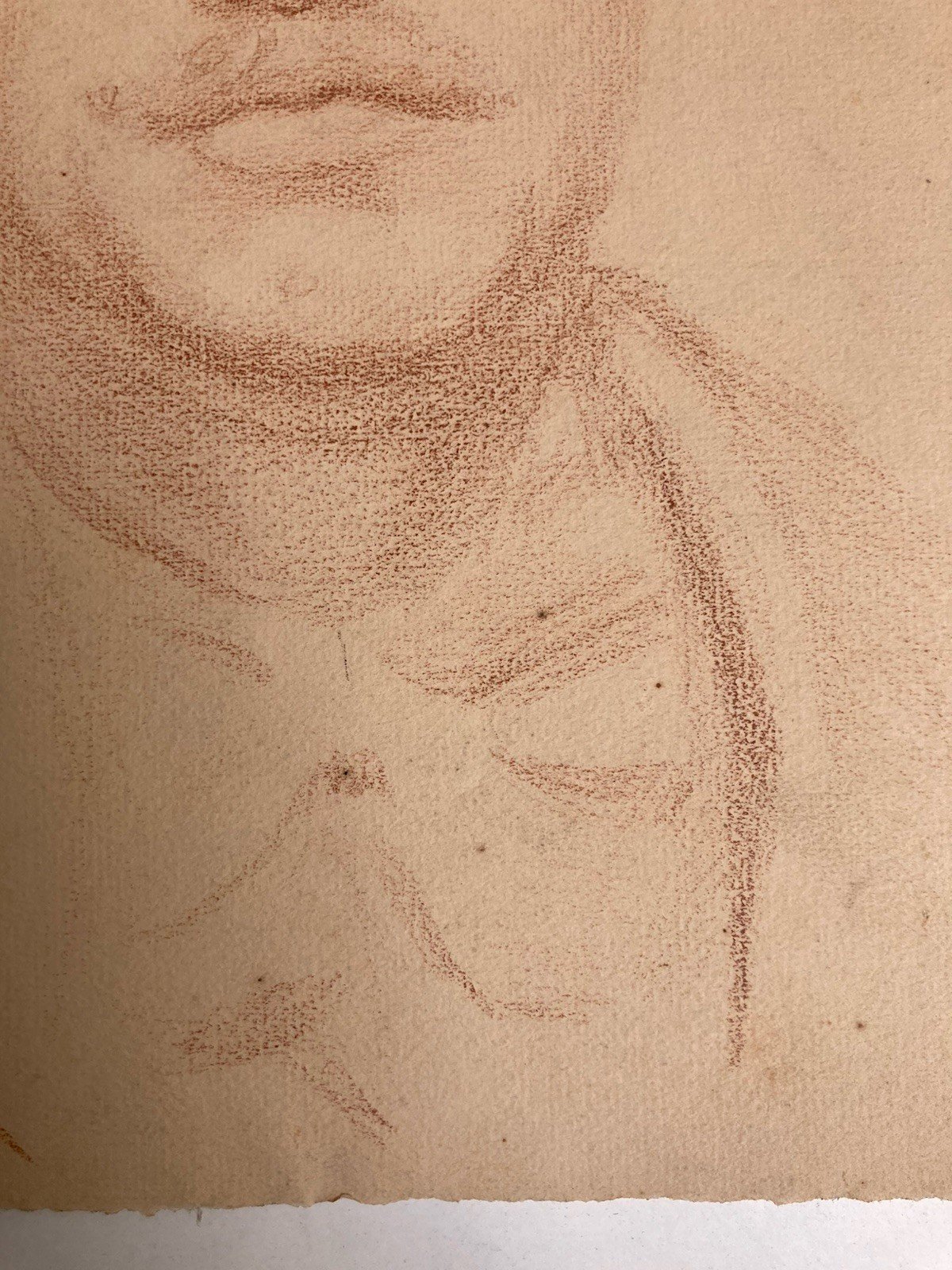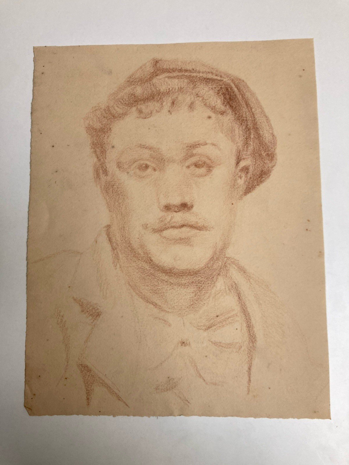 Dessin Crayon Portrait Jeune Homme Buste Ancien Art XIXe Casquette Tête
