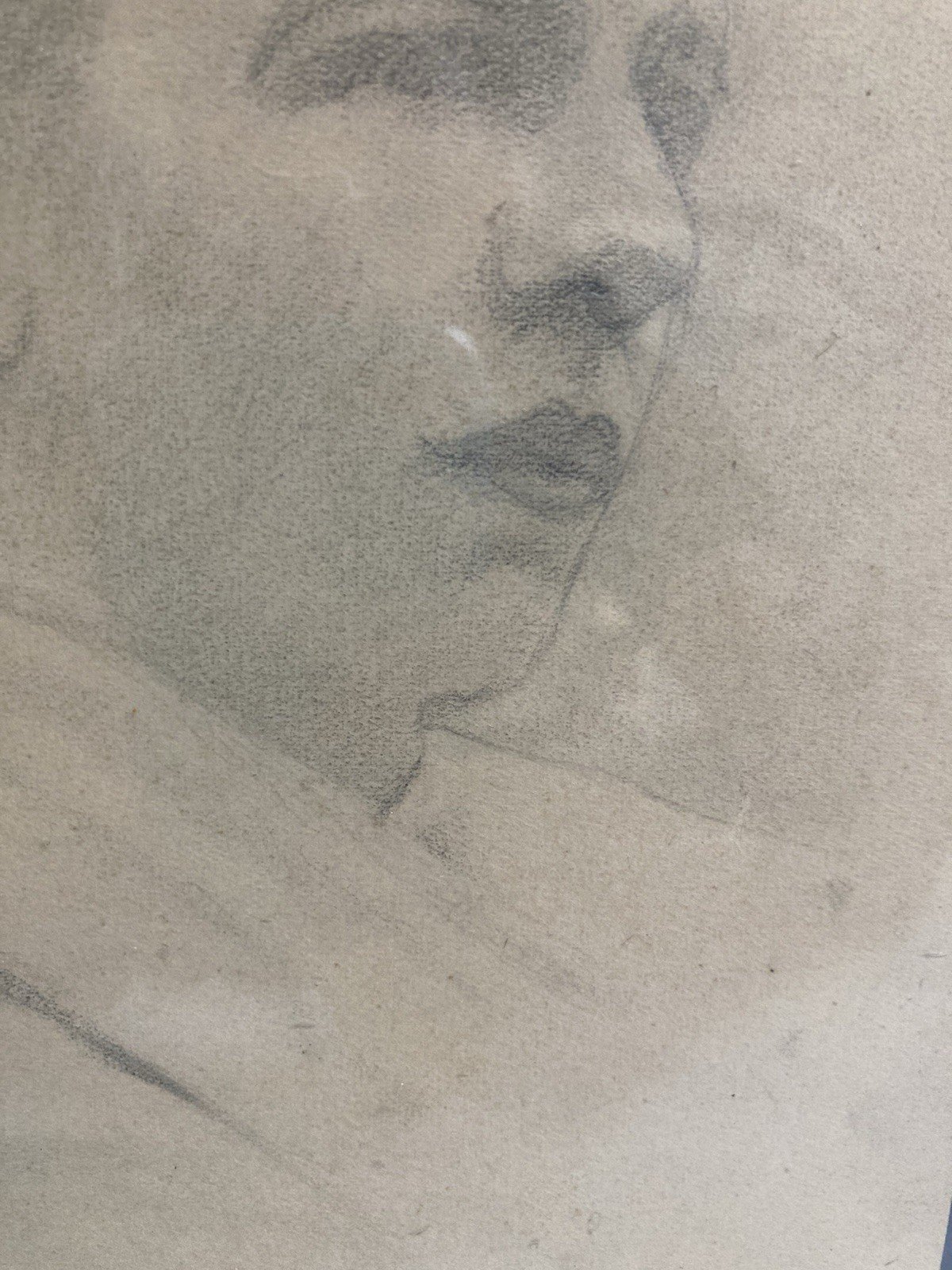 Dessin Crayon Portrait Jeune Homme Couronne Laurier Art XIXe Paul Thomas